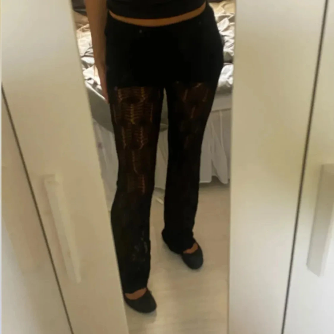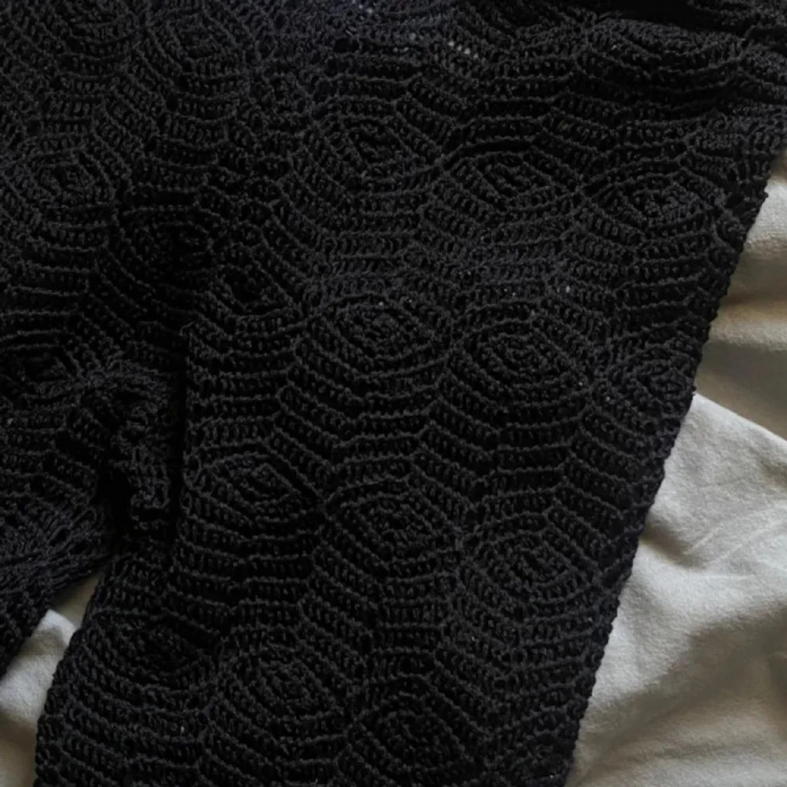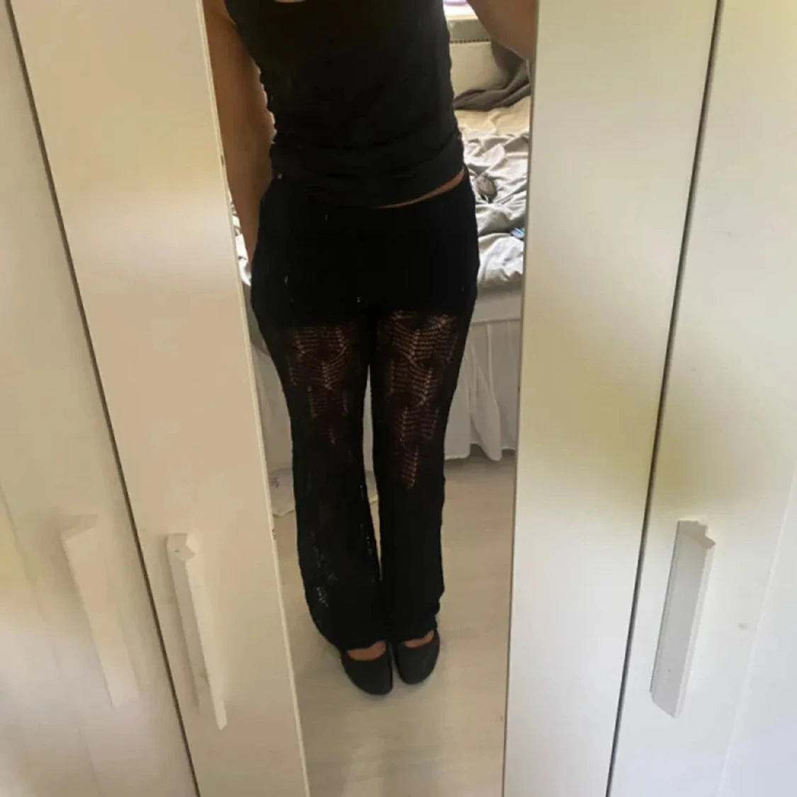 Svarta virkade byxor med mönster