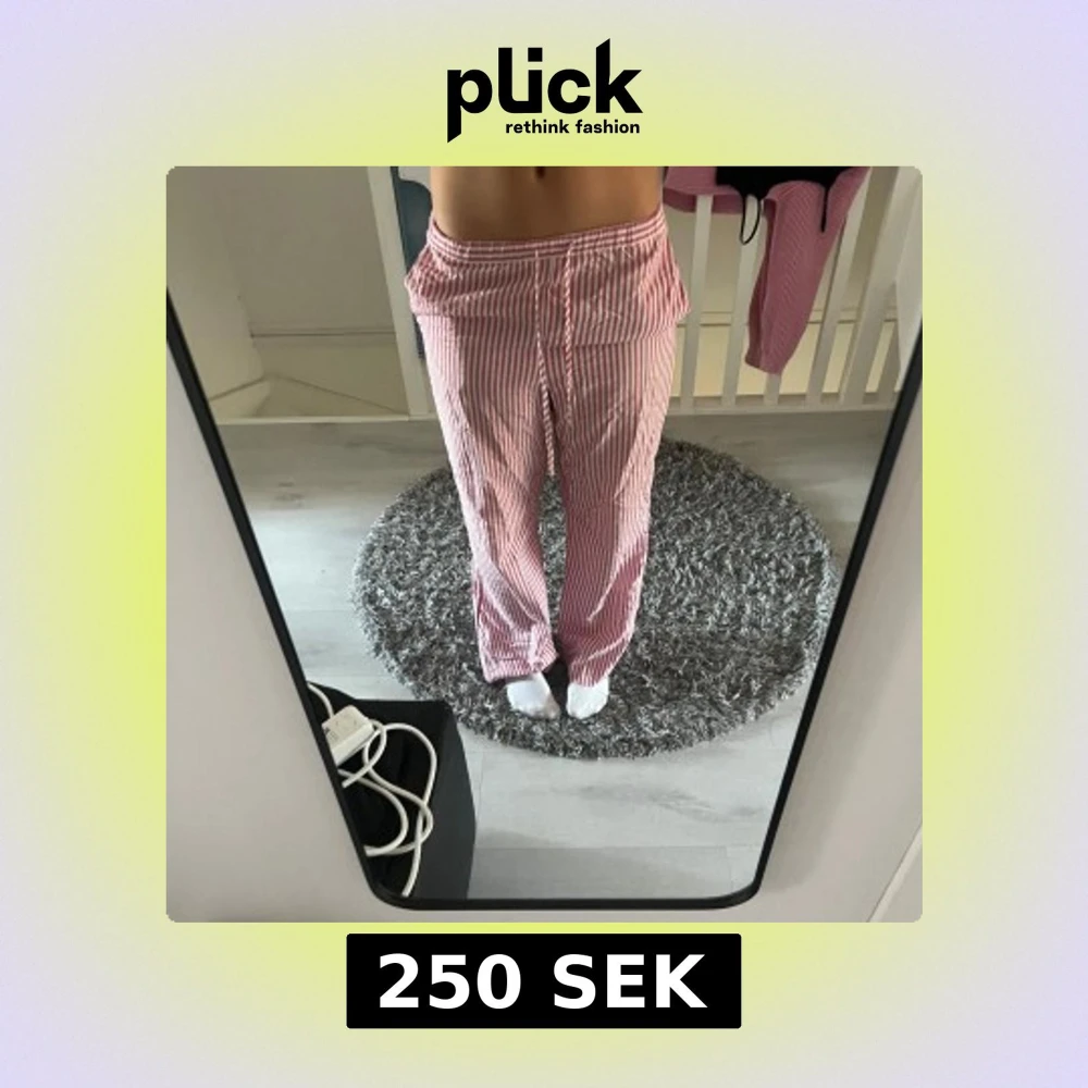 Sköna tunna rosa och vit randiga byxor💕 Endast använda en gång, perfekt till lite kyligare sommardagar.