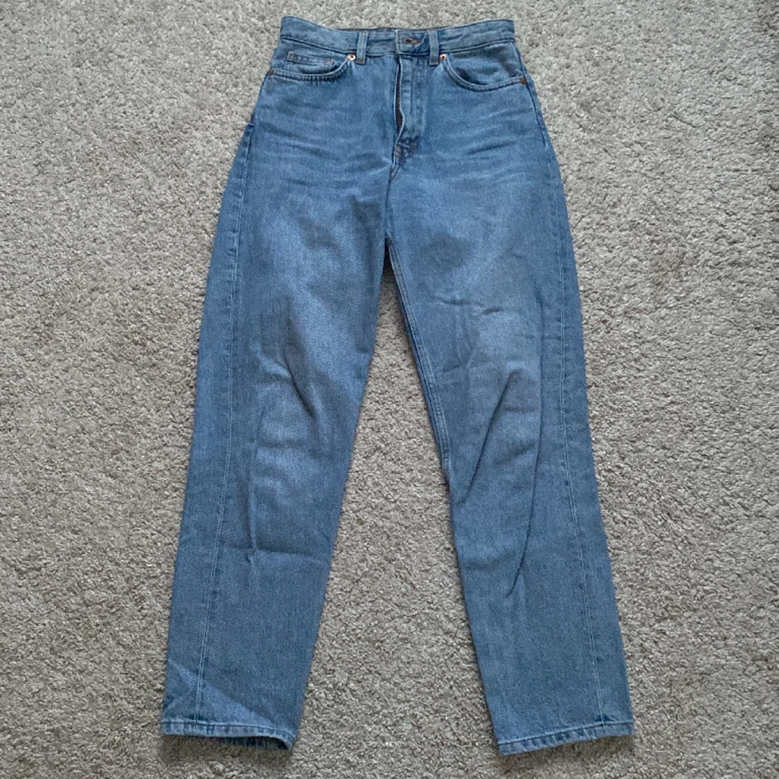Jättefina blå ”mom-jeans” från Monki i storlek 25💗finns fler bilder vid omfrågan!💕Som nyskick