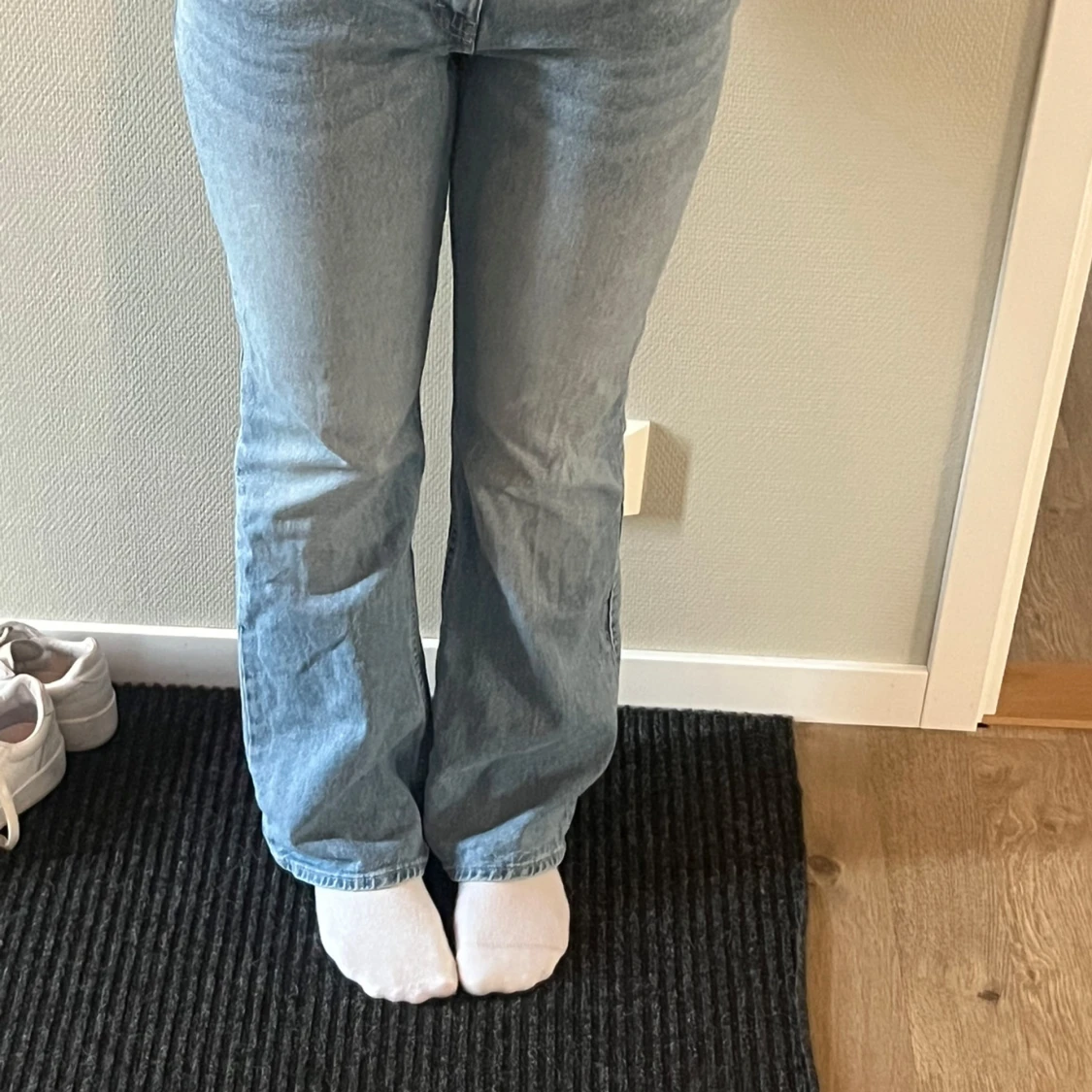 Ett par lowwaist ljusblåa jeans i bootcut modell. Köpta en månad sen och endast använda en gång. Orginal pris 709kr