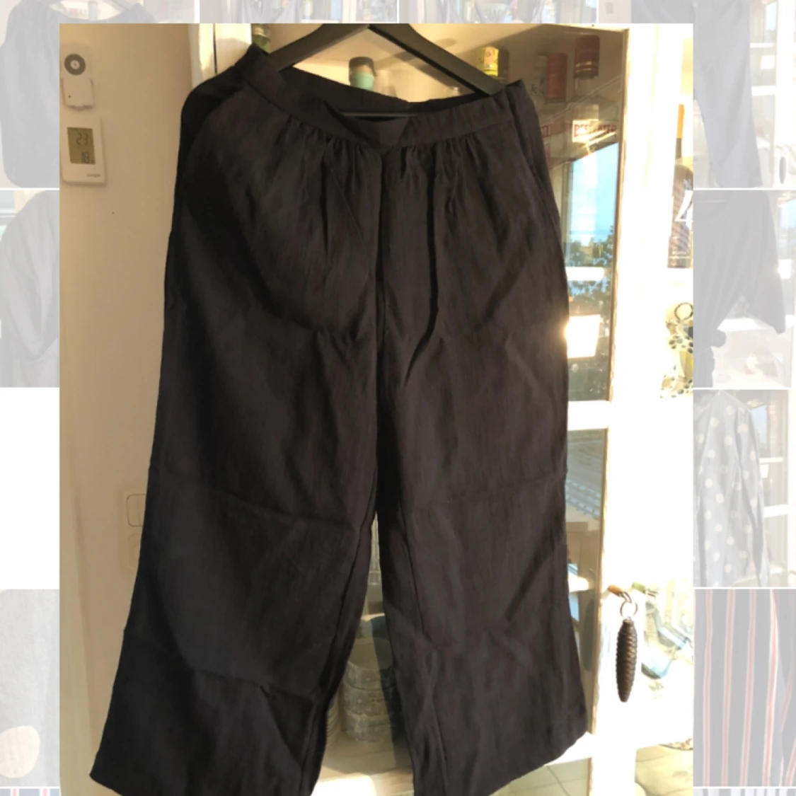 Jättefina byxor med veck upptill och dragkedja på sidan. Lite använda.fraktar mot kostnad, har katt.