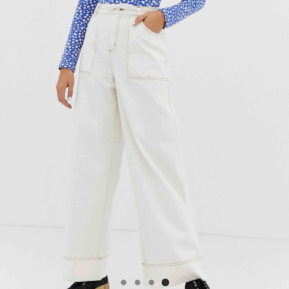 Benvita vida byxor med bruna sömmar. Tyvärr för små för mig. Använd 1-2 gånger. Från monki, storlek 34 💞🤩 köparen betalar för frakt