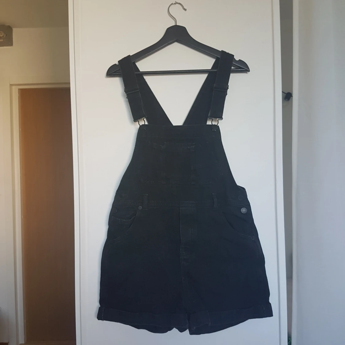 Svarta hängselbyxor från Monki i strl M. Använda men i bra skick. Fram och bakfickor.