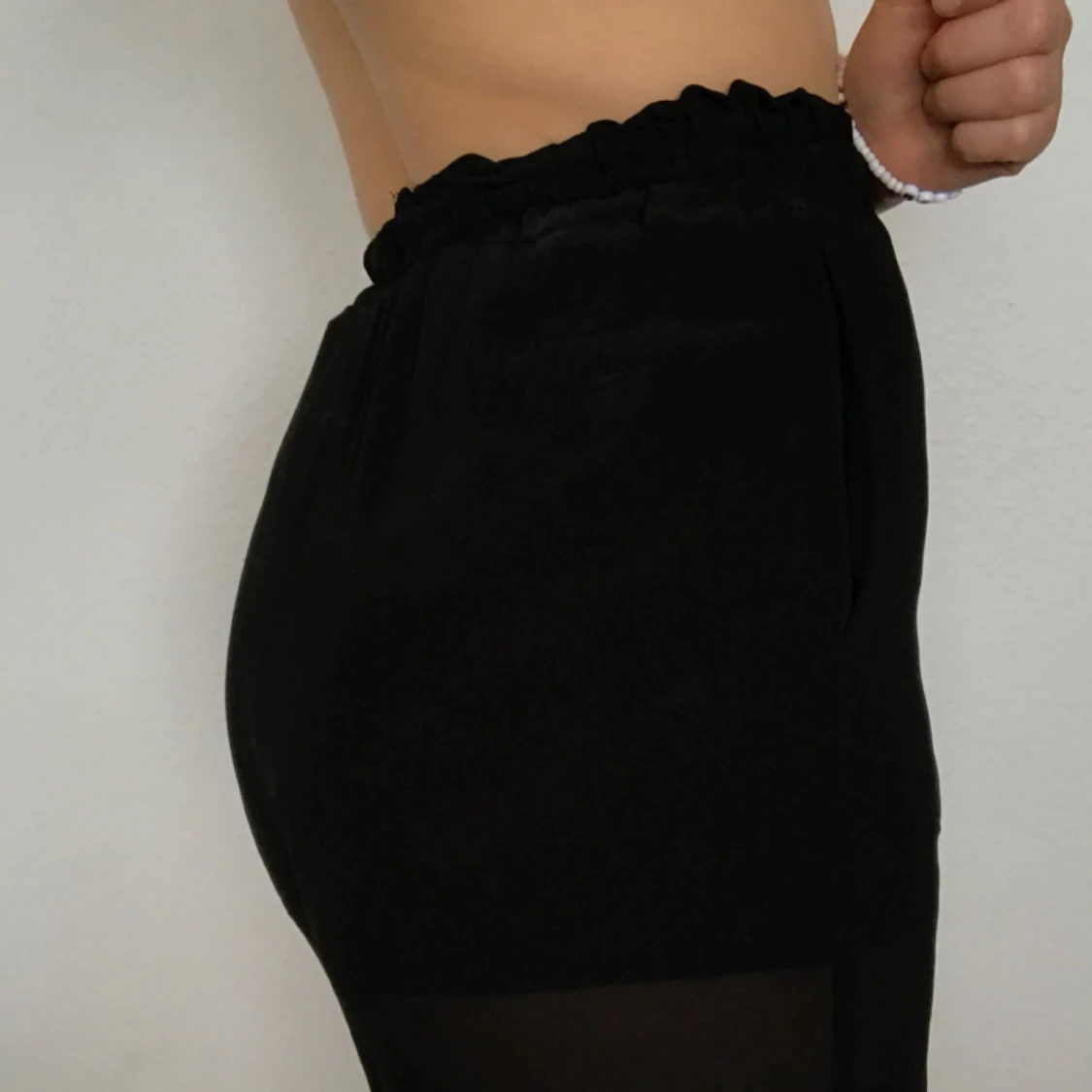 Passar XS! Högmidjade paperbag-pants i mesh. Bild två visar undershortsen som täcker det som täckas bör under meshen. Dessa är inget man tänker på när man ser byxorna, men kunde vara bra att visa! Frakt 45:- eller mötes i jkpg/habo 🌼