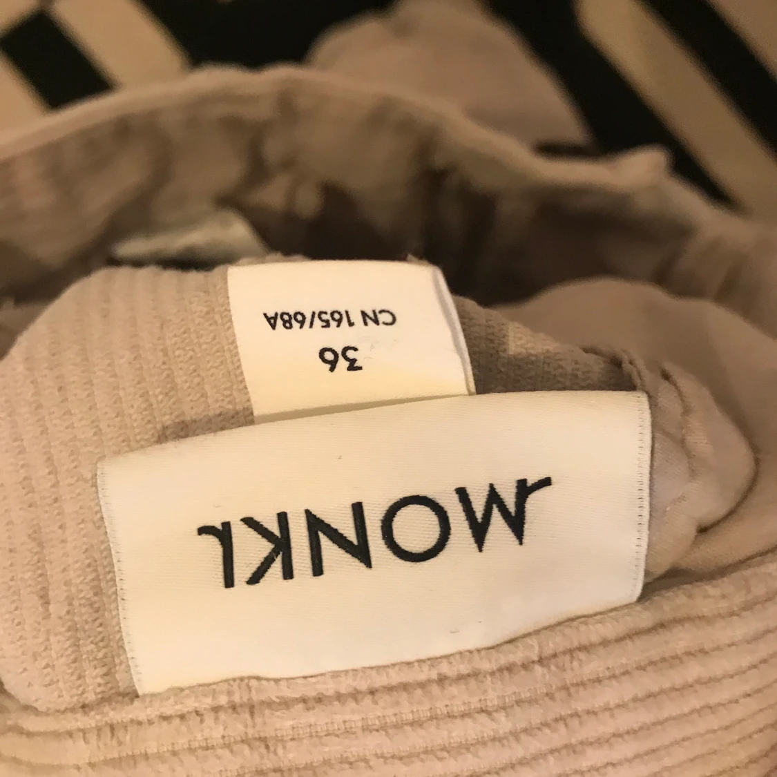 Beige Manchesterbyxor i strl 36. Raka/vida i modellen. Märke-Monki. Fickor fram. Mycket bra skick.