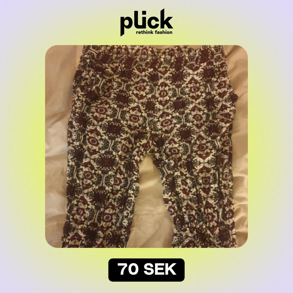 Säljer ett par supercoola mönstrade byxor i bomull. De har ett unikt blommigt mönster i svart, rött och vitt. Perfekta för en avslappnad stil eller en bohemisk look. Byxorna är bekväma och har en loose passform. Super sköna och tunnare i tyget.