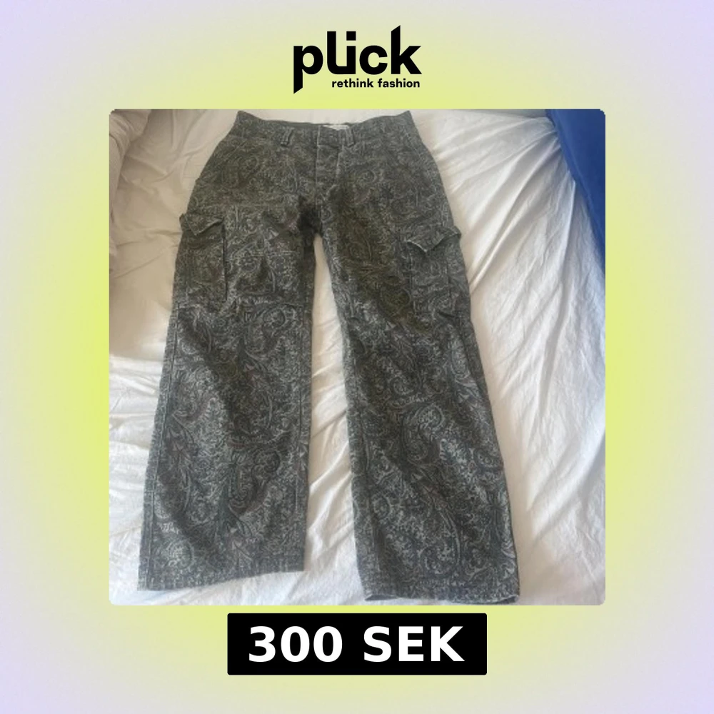 Säljer ett par cargopants från Zara med paisleymönster i svart, grått och röda detaljer. Byxorna har flera fickor på sidorna och bred passform. Perfekta för dig som vill sticka ut med ett unikt mönster. Jag brukar ha s och den här passar perfekt så s/ m skulle jag säga