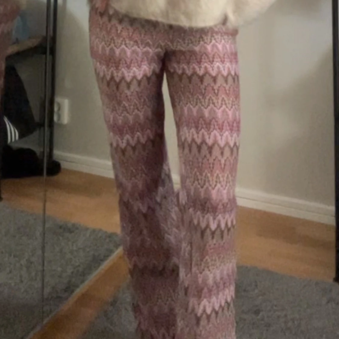 Missoni inspirerande byxor så kallade orrebyxor dock med ett virkat material, fråga gärna efter fler bilder om intresserad. Sitter bra på mig som är 175❣️