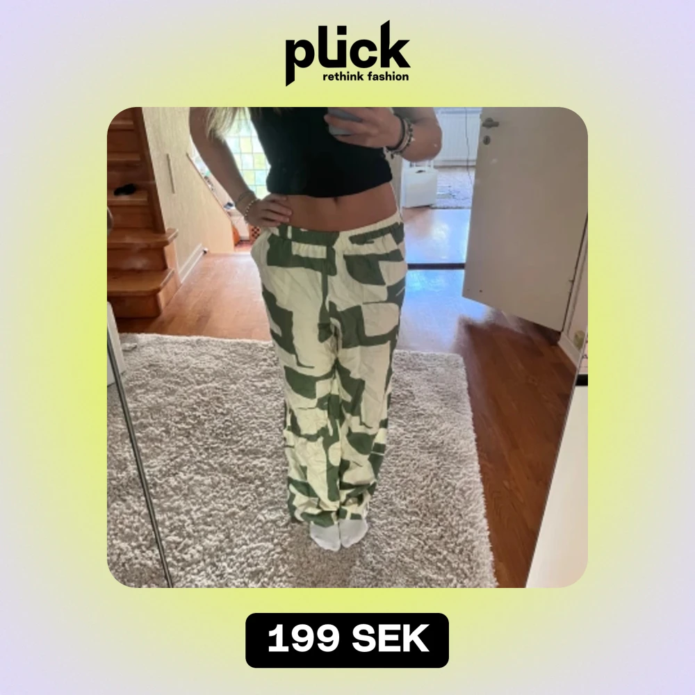 Ett par mönstrade byxor som endast använda en gång. Stretchiga i midjan.