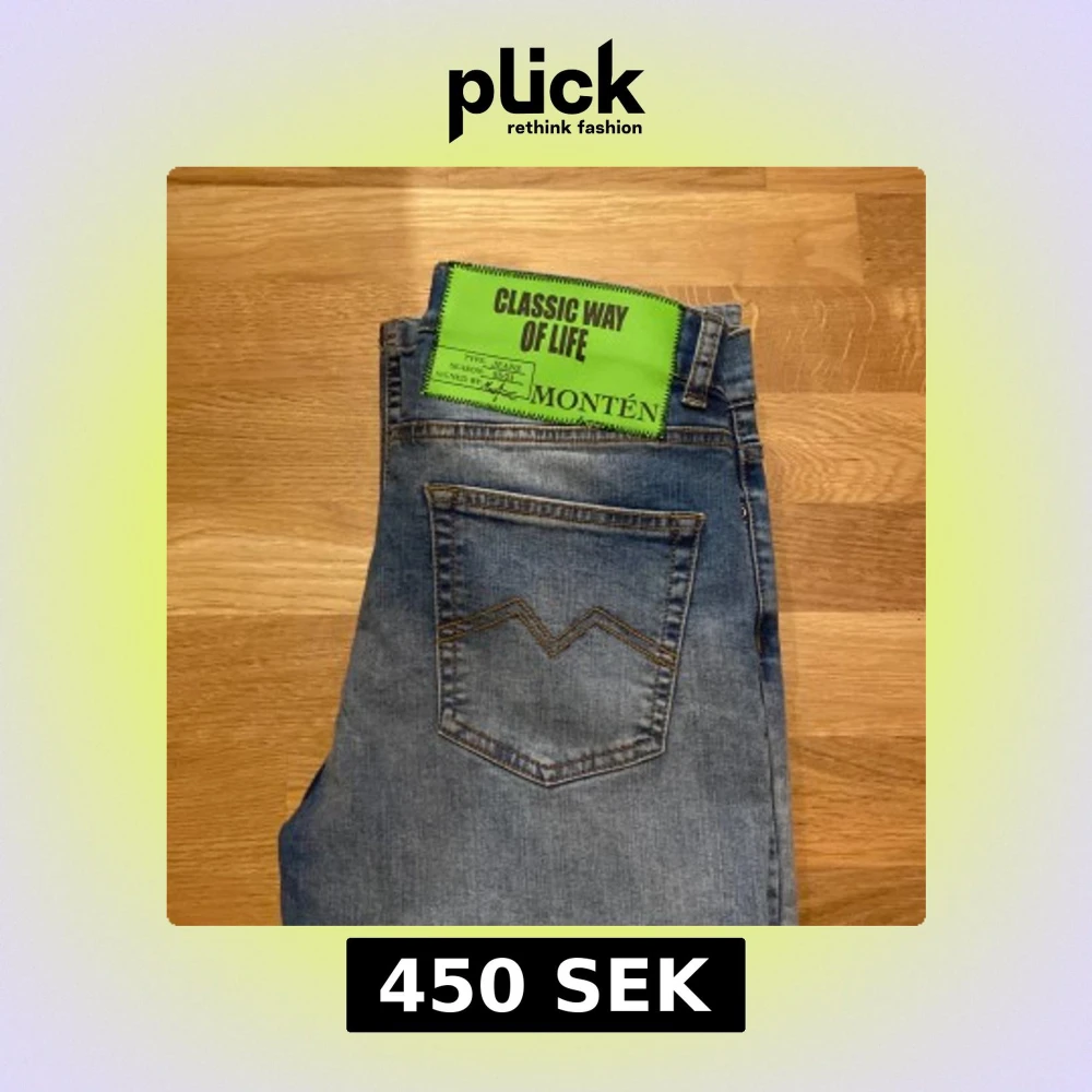 Snygga blå jeans från Montén! De har en normal passform och är tillverkade i slitstarkt denim. Skicket är som nytt och är knappt använda. Storleken är 28/28, bara att höra av dig vid intresse och frågor!🥂