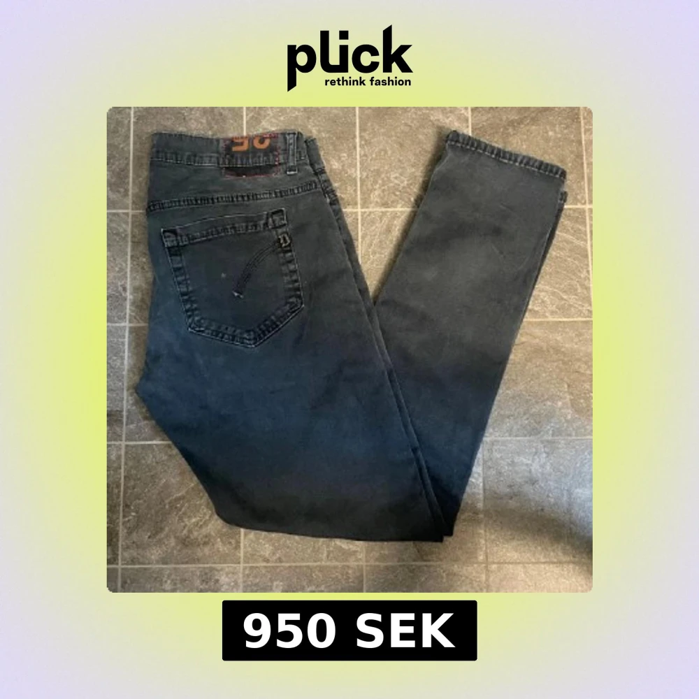Snygga svarta jeansbyxor från Dondup, tillverkade i Italien. De har en klassisk femficksdesign och en diskret logga på baksidan. Perfekta för en stilren look. Ny pris 3000kr pris kan diskuteras 🏆