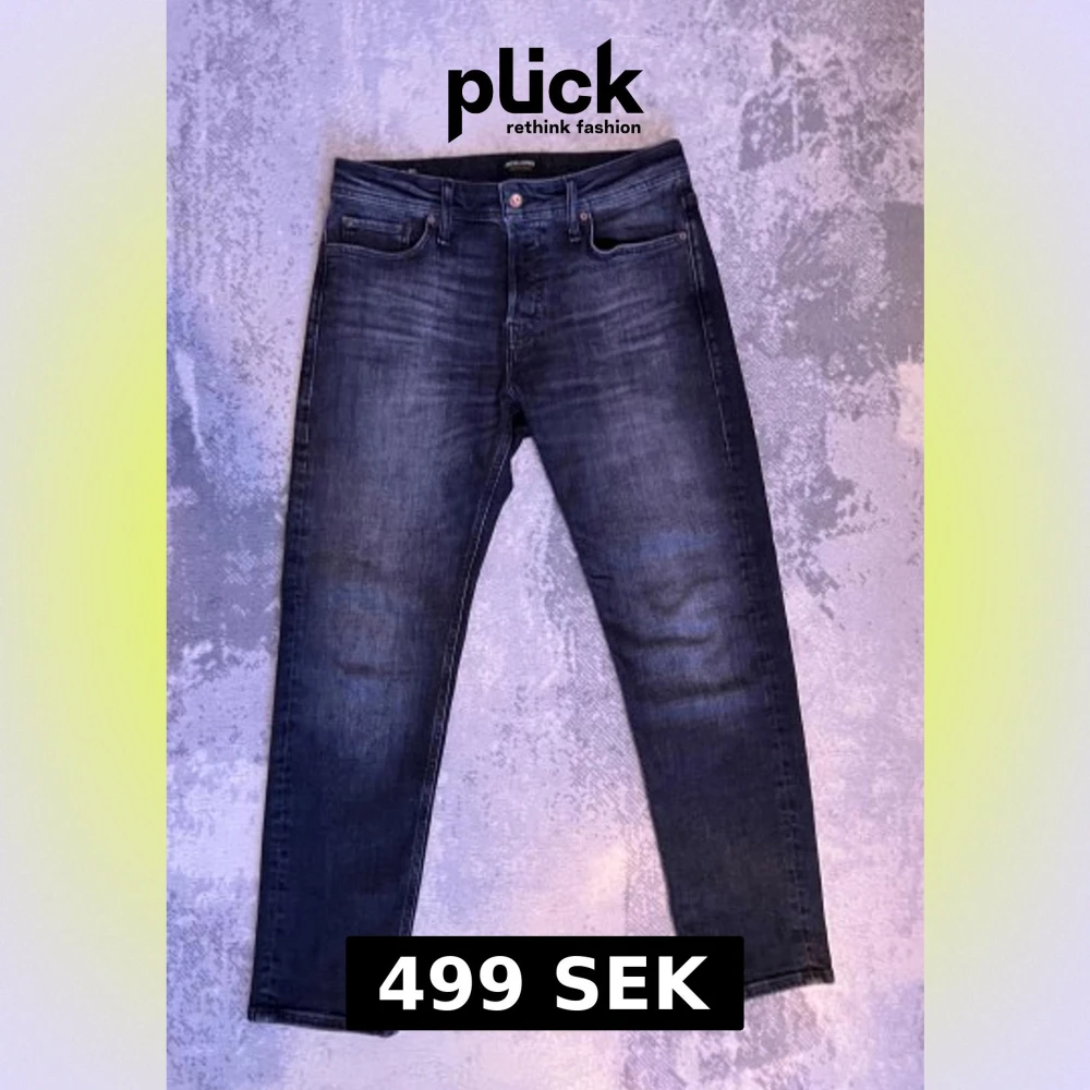 Snygga mörka jeans från Jack and jones i storlek (31-30). med klassisk femficksdesign och sthraight passform. Jeansen har en lätt tvättad look och Perfekta för dig som gillar en clean och modern stil.