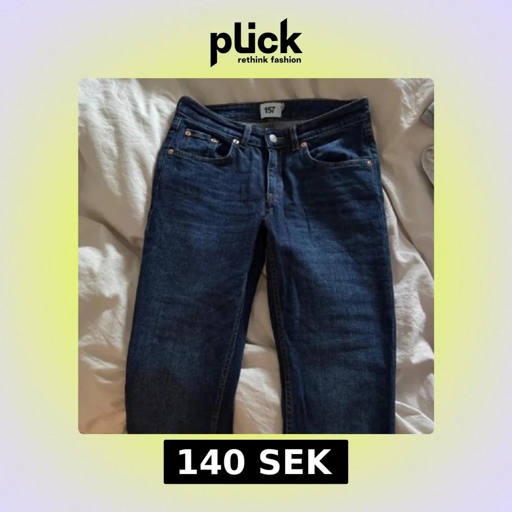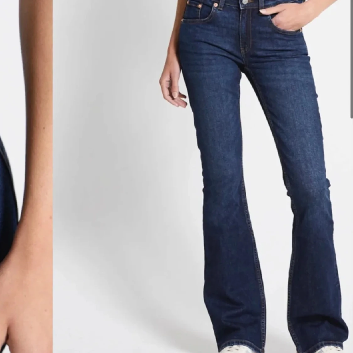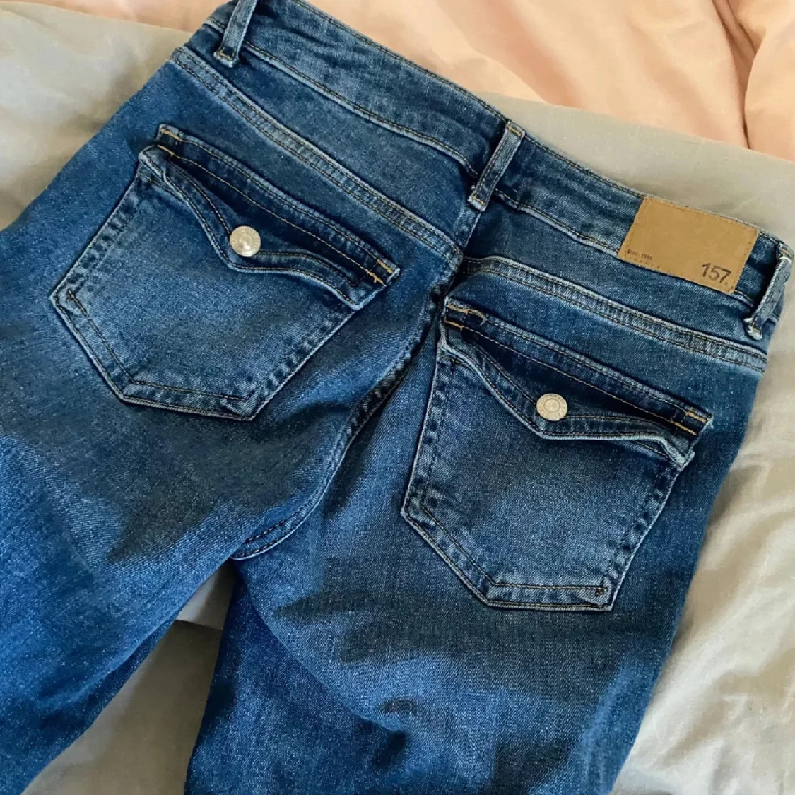 (KOLLA IN RESTEN AV MIN PROFIL!!) Säljer ett par mörkblå jeans från lager 157 med klassisk bootcut-passform. Har använts fåtal gånger och i storlek s/short
