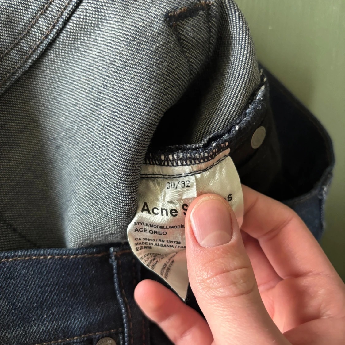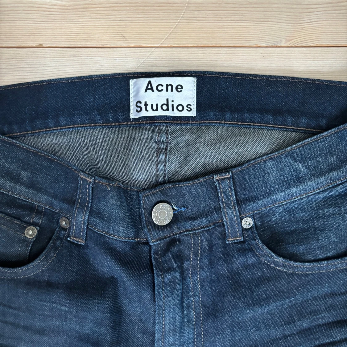 Snygga mörkblå jeans från Acne Studios, modell Ace Oreo. Klassisk femficksdesign med raka ben och normal passform. Jeansen är tillverkade i bomull och har subtila slitningar för en cool look. Perfekta för dig som gillar stilrena och tidlösa jeans.