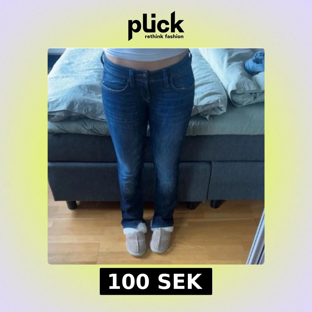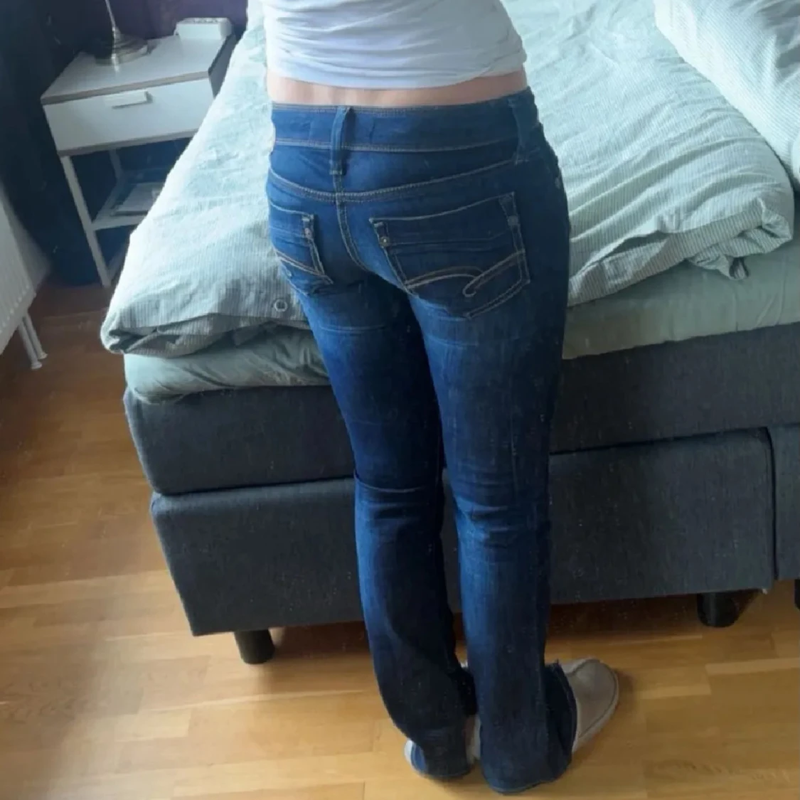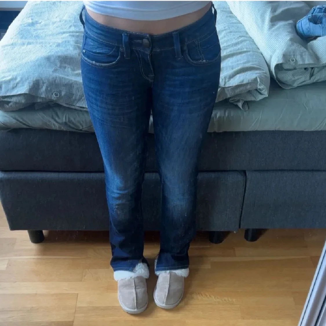 Snygga mörkblå jeans med klassisk bootcut passform och låg midja. Jeansen har fem fickor, kontrastsömmar och är tillverkade i slitstarkt denim. Perfekta för dig som gillar en tidlös och cool stil.