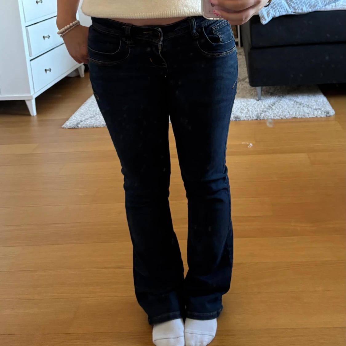 Lågmidjade bootcut jeans från LTB i model valerie, W27/L30. Lite urtvättad färg och det förekommer slitningar längst ner på byxorna (syns på sista bilden) 💗💕