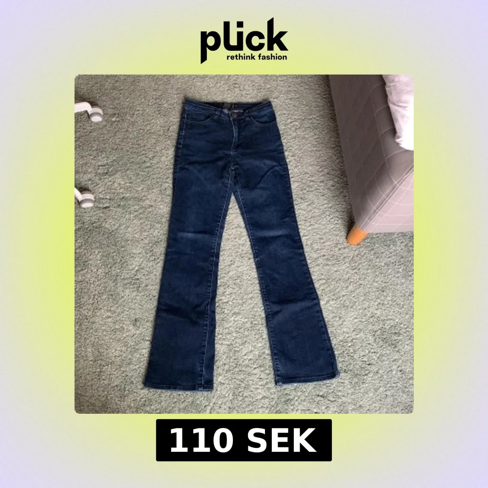 Mörkblå bootcut jeans i storlek 28. Innerbenslängd: 79 cm