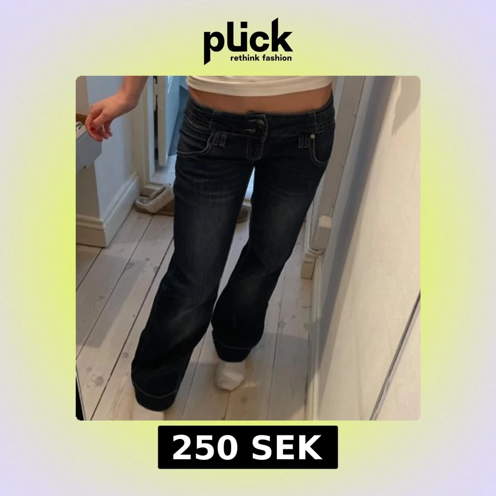 Supersnygga unika mörkblå jeans med vita sömmar!