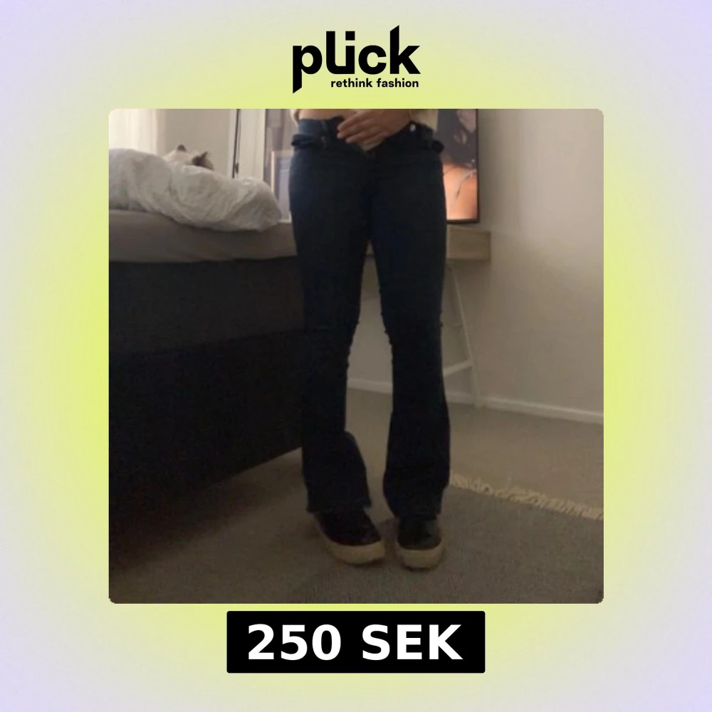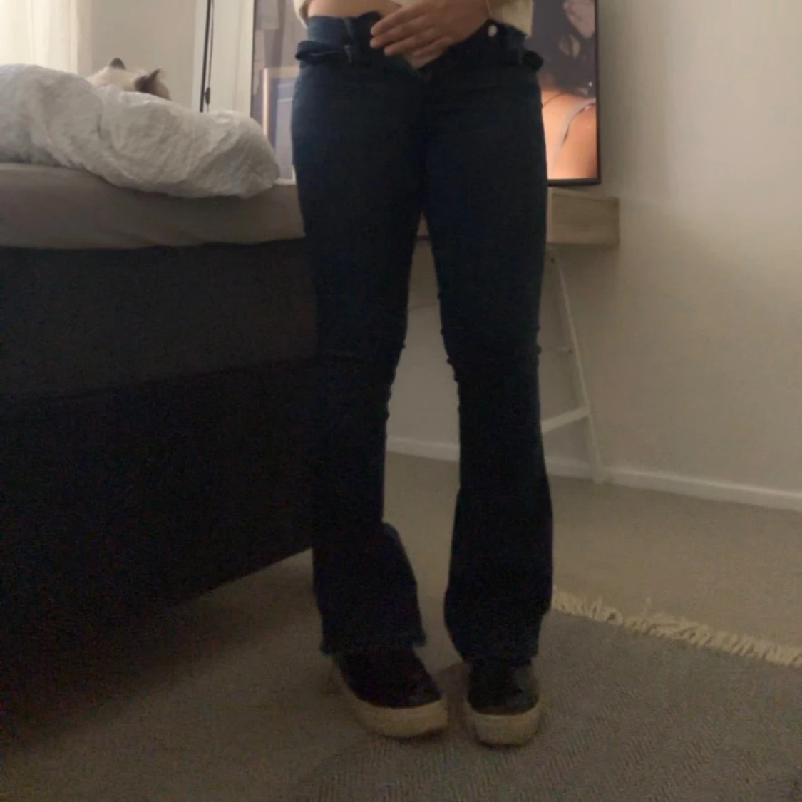 Snygga mörkblå jeans med bootcut passform och hög midja. Jeansen har klassisk femficksdesign och är tillverkade i ett stretchigt denimtyg som sitter bekvämt. Perfekta för dig som gillar en tidlös och trendig look.
