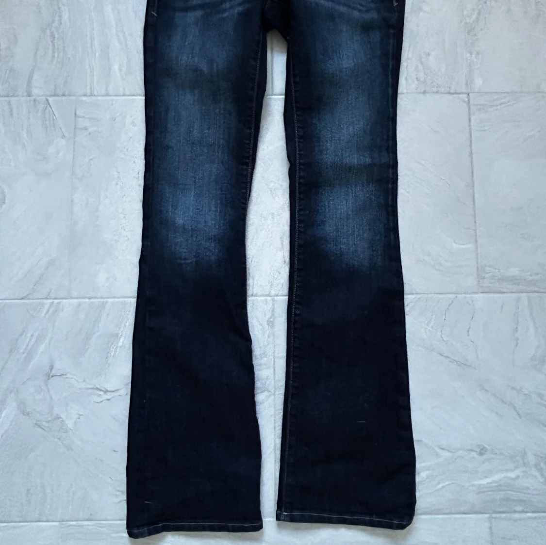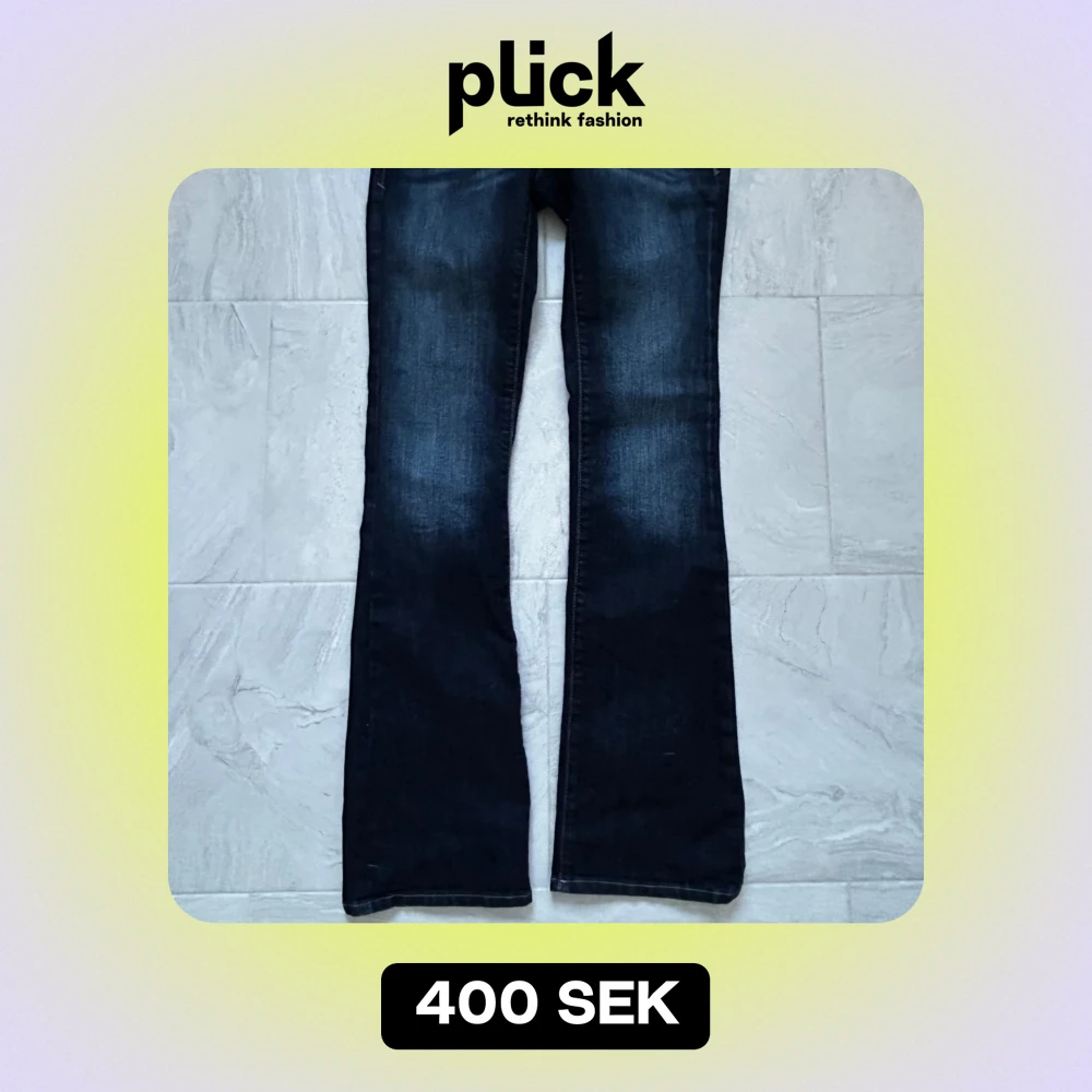 Säljer ett par snygga mörkblå bootcut jeans i bra skick.