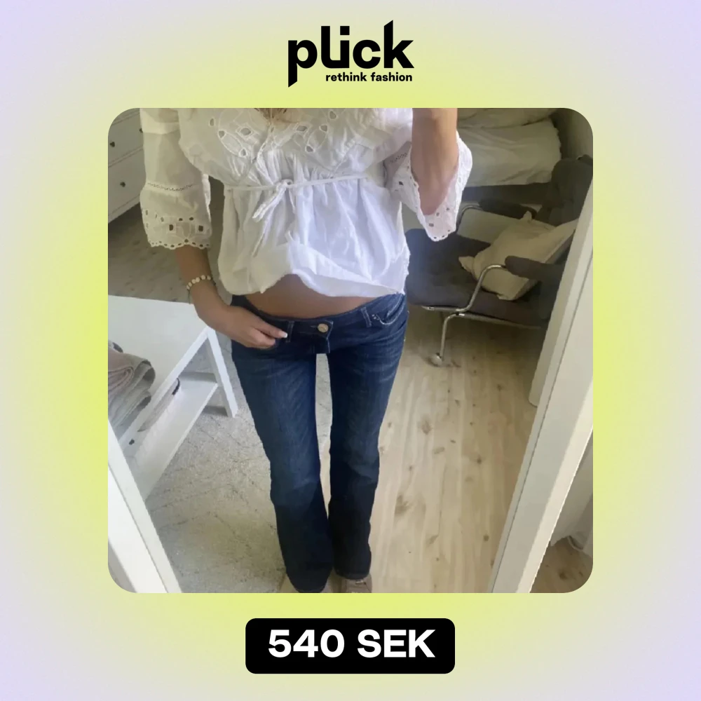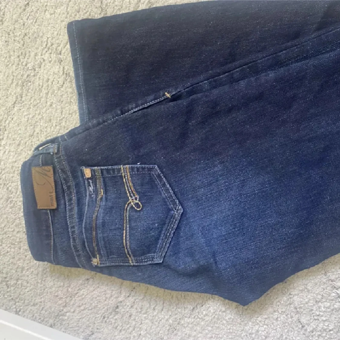 Snygga mörkblå bootcut jeans med låg midja och klassisk femficksdesign. 🥰 säljer då dom tyvärr var för små för mig. !Lånade bilder!