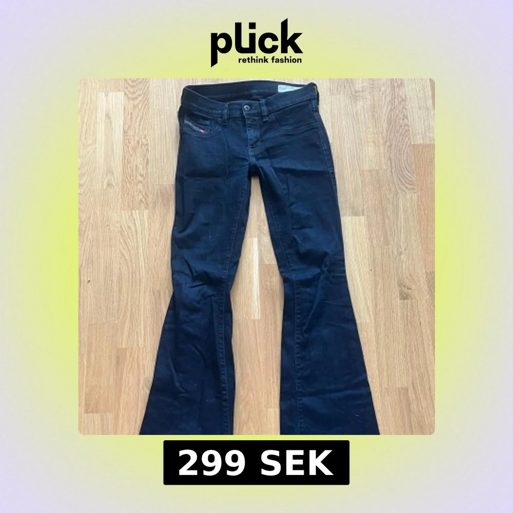 Snygga mörkblå jeans från Diesel med klassisk femficksdesign och bootcut-ben. Jeansen har stretchigt material för extra komfort och en diskret logga på myntfickan. Perfekta för dig som gillar en retroinspirerad look med utsvängda ben.