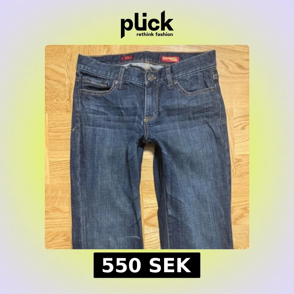 Snygga mörkblå jeans från Express med bootcut passform och klassisk femficksdesign. Jeansen har broderade detaljer på bakfickorna och kontrastsömmar. Tillverkade i mjukt denimtyg som sitter skönt hela dagen. storlek 36/38 skulle jag säga, utgå ifrån mått.