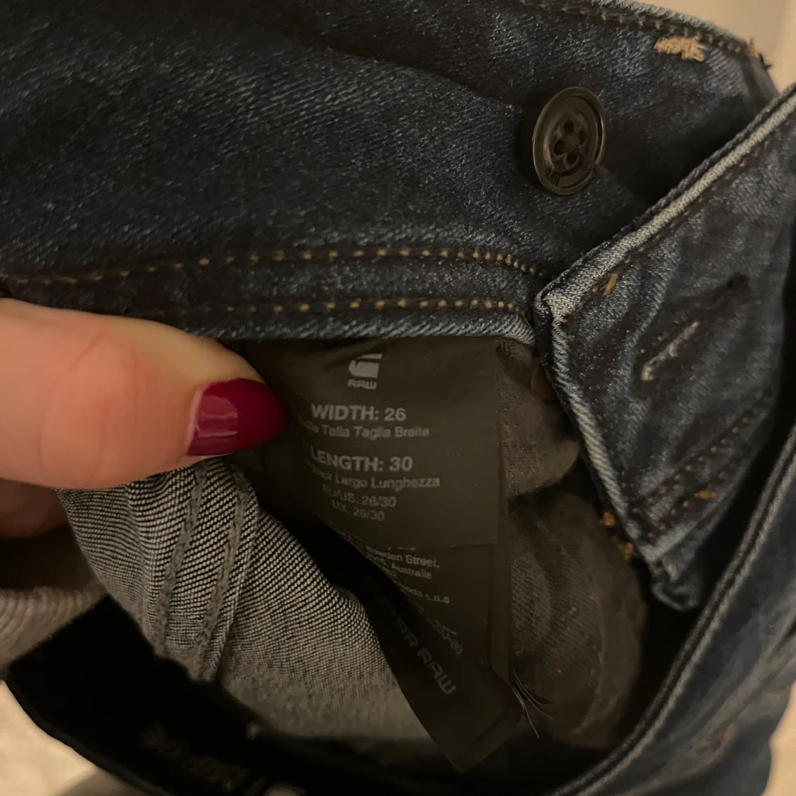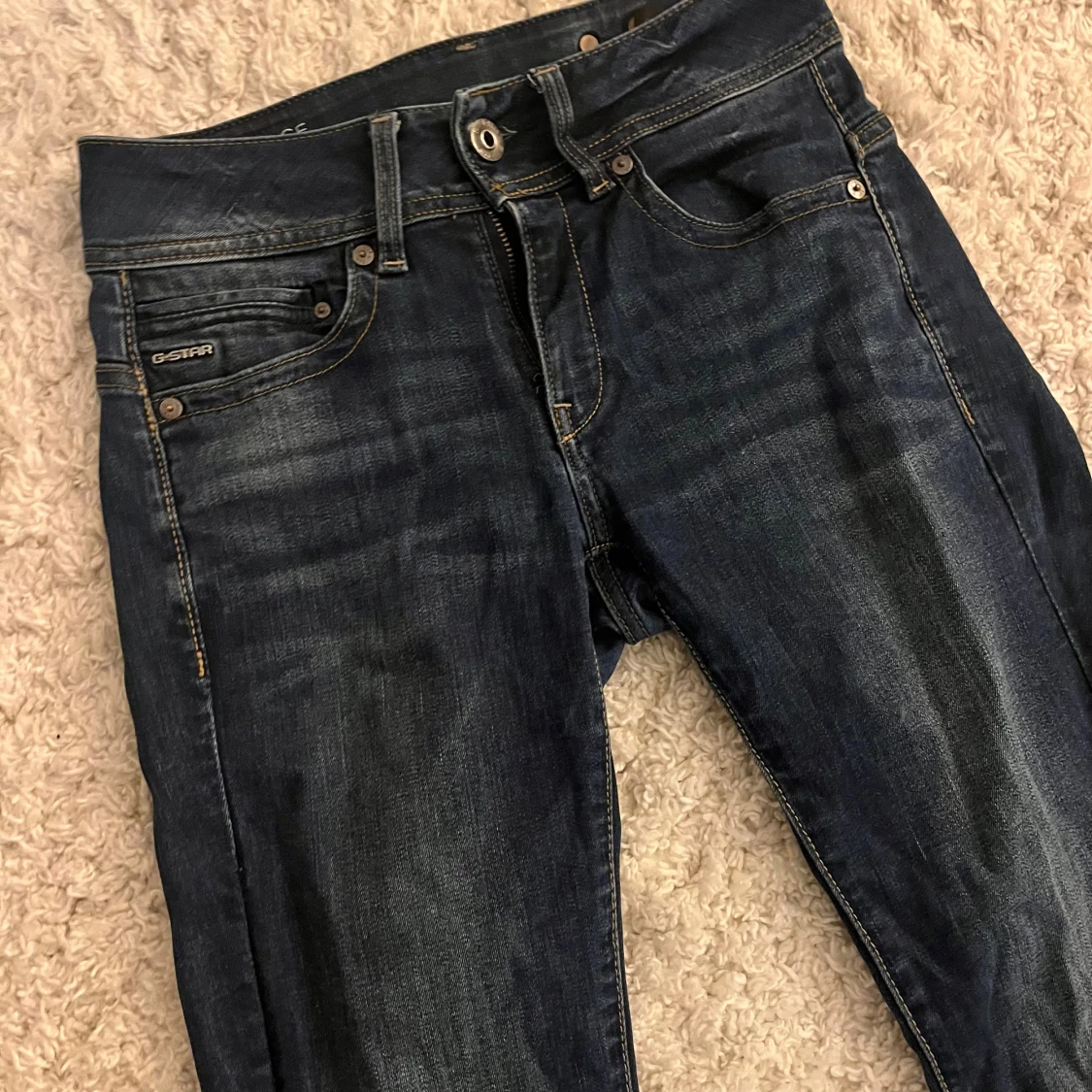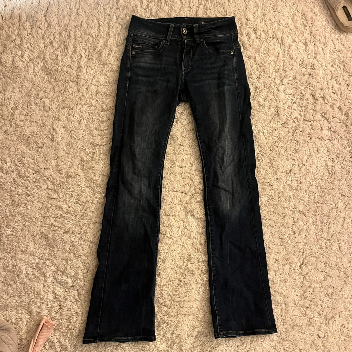 Så snygga mörkblåa g-star jeans som är lågmidjade och bootcut. Lite slitna nedtill men annars i bra skick💕storlek w26 L30. Köpta för 1200kr