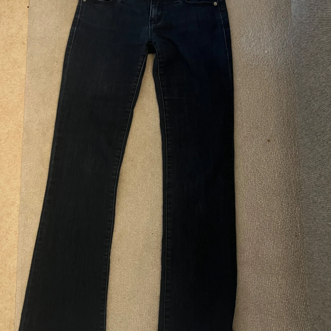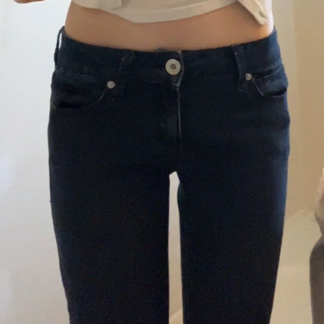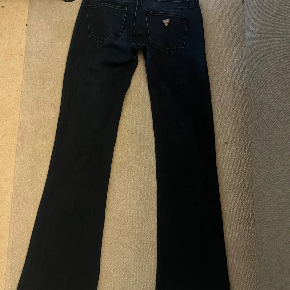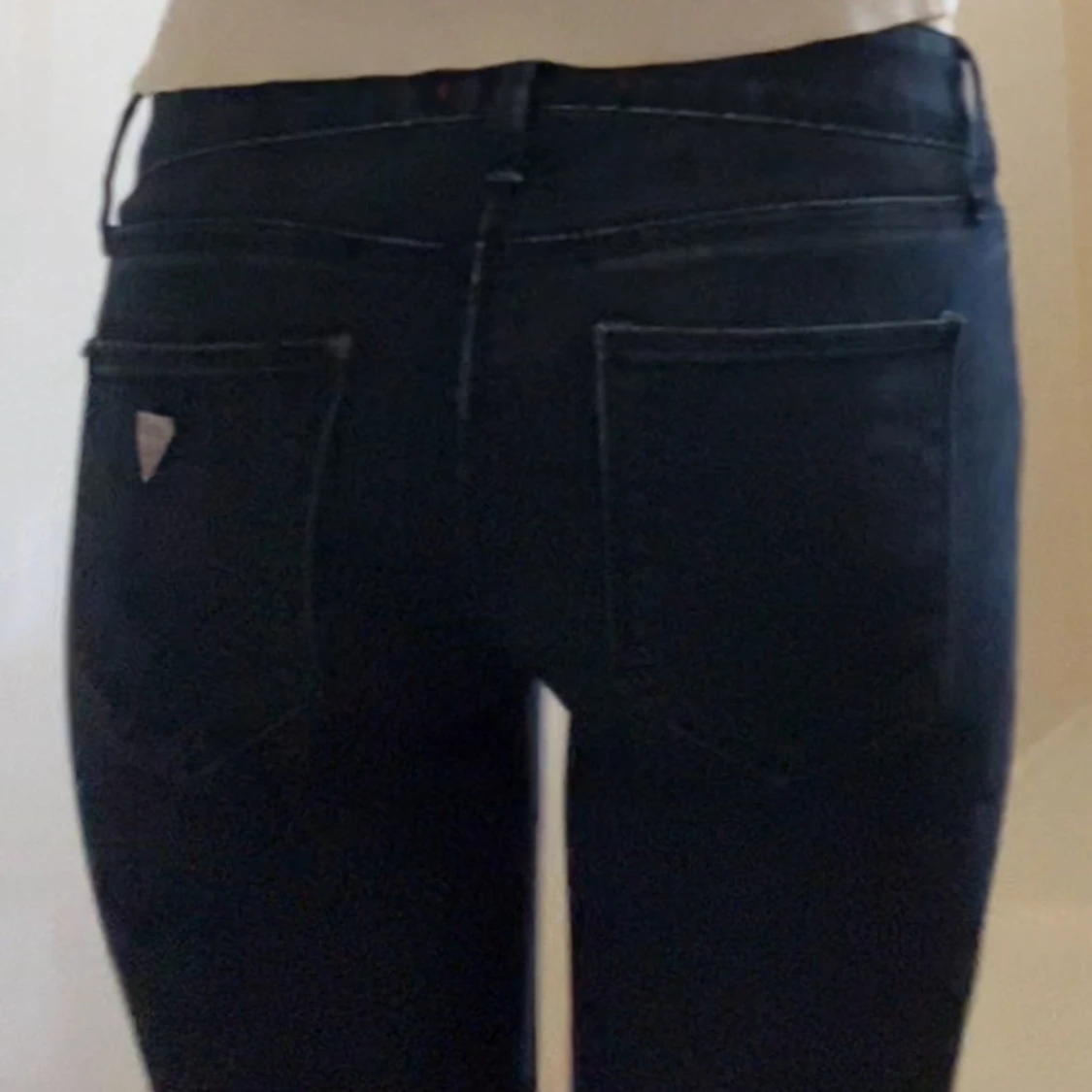 Snygga mörkblå jeans från Guess med klassisk femficksdesign och bootcut-ben. Jeansen har hög midja och är tillverkade i stretchigt denim för en bekväm passform. Diskret Guess-logga på bakfickan. Perfekta för dig som gillar en tidlös look. Köpta i USA.