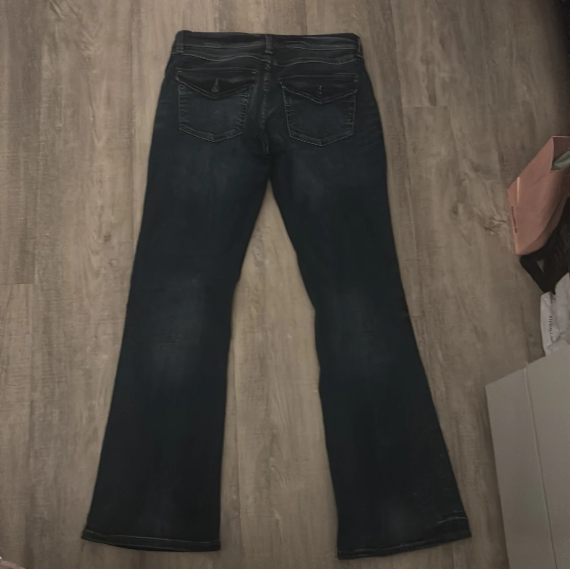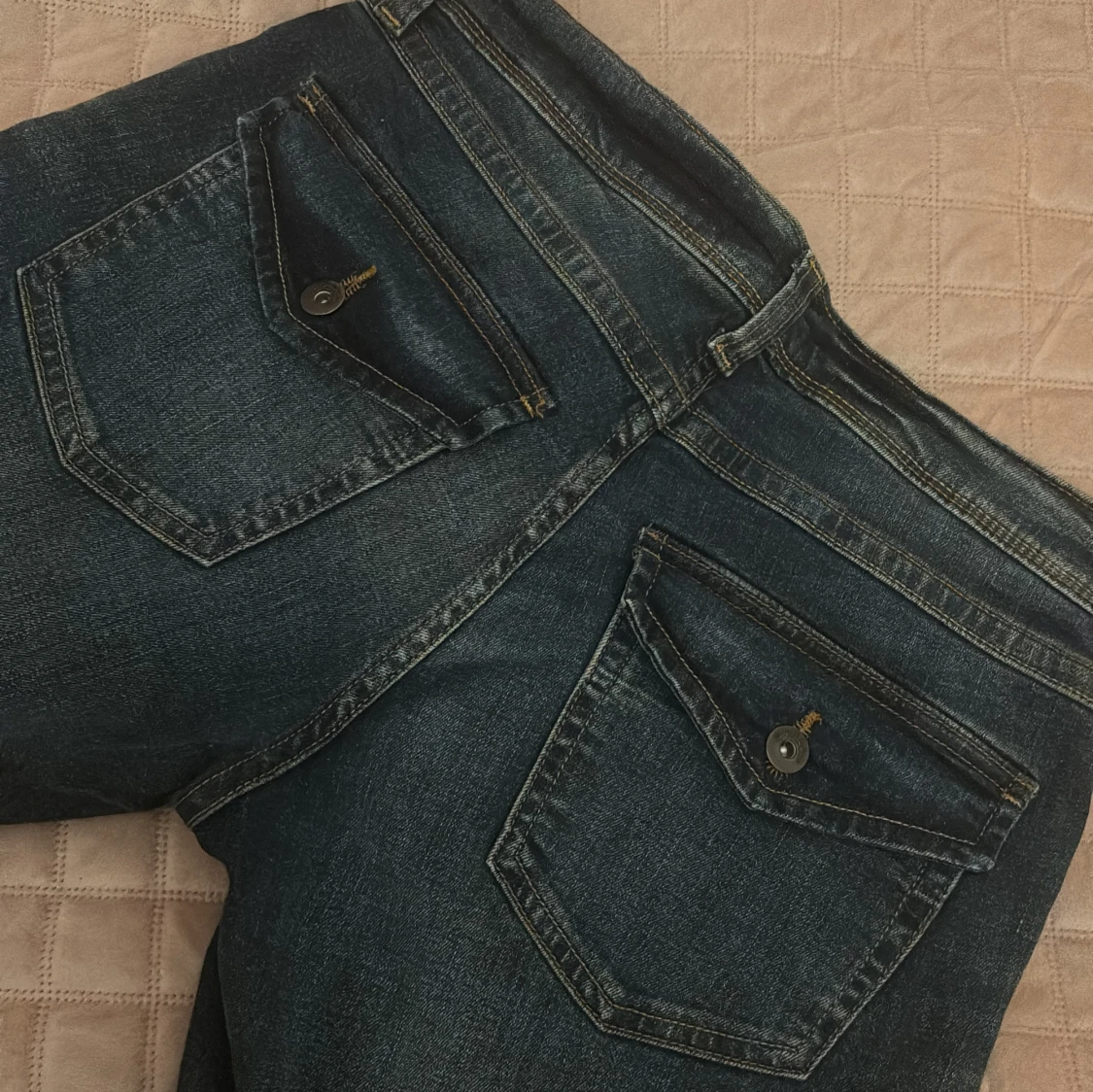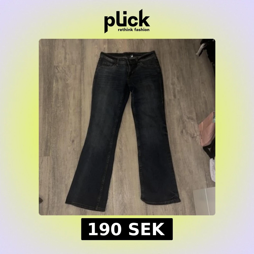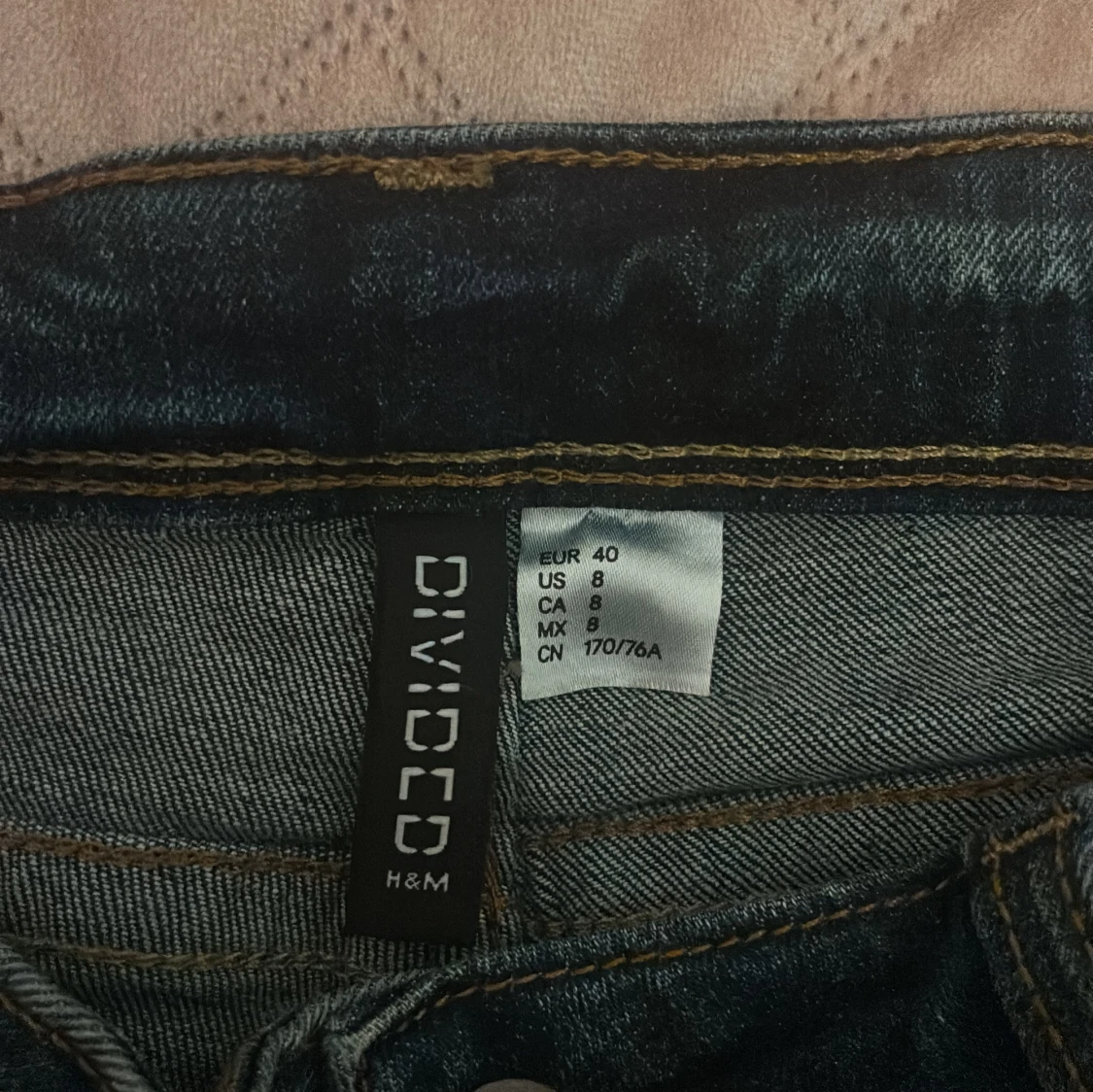 Mörkblå bootcut jeans från H&M Divided i storlek 40. Klassisk femficksmodell med snygga bakfickor. Jeansen har en lätt tvättad look och med skön passform.