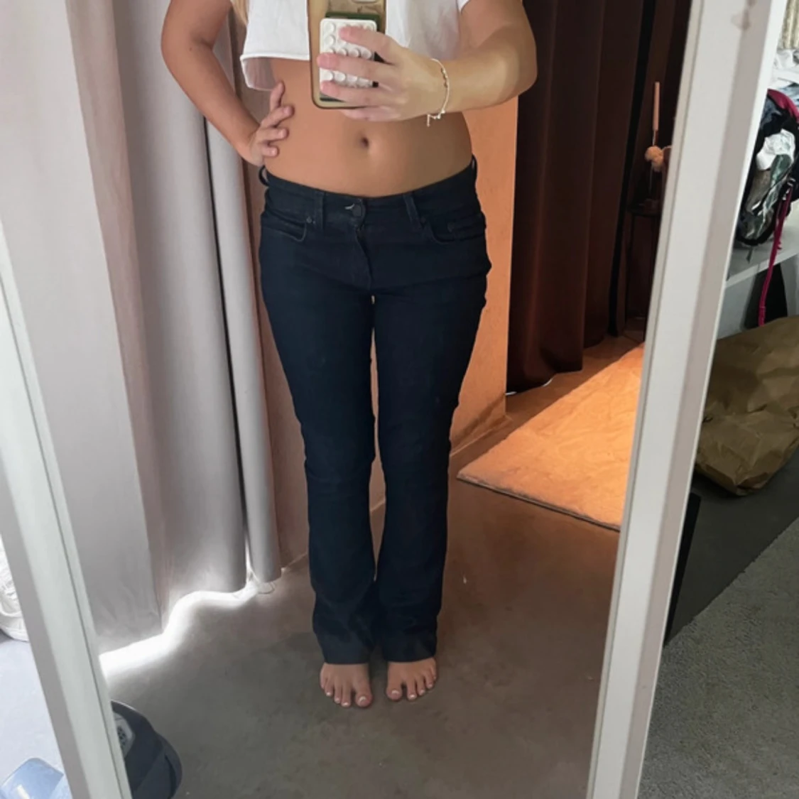 Snygga mörkblå jeans från LTB med klassisk femficksdesign och låg midja. Modellen har bootcut-ben som ger en schysst siluett och är tillverkade i mjukt jeanstyg. MIDJA: 39 längd: 80