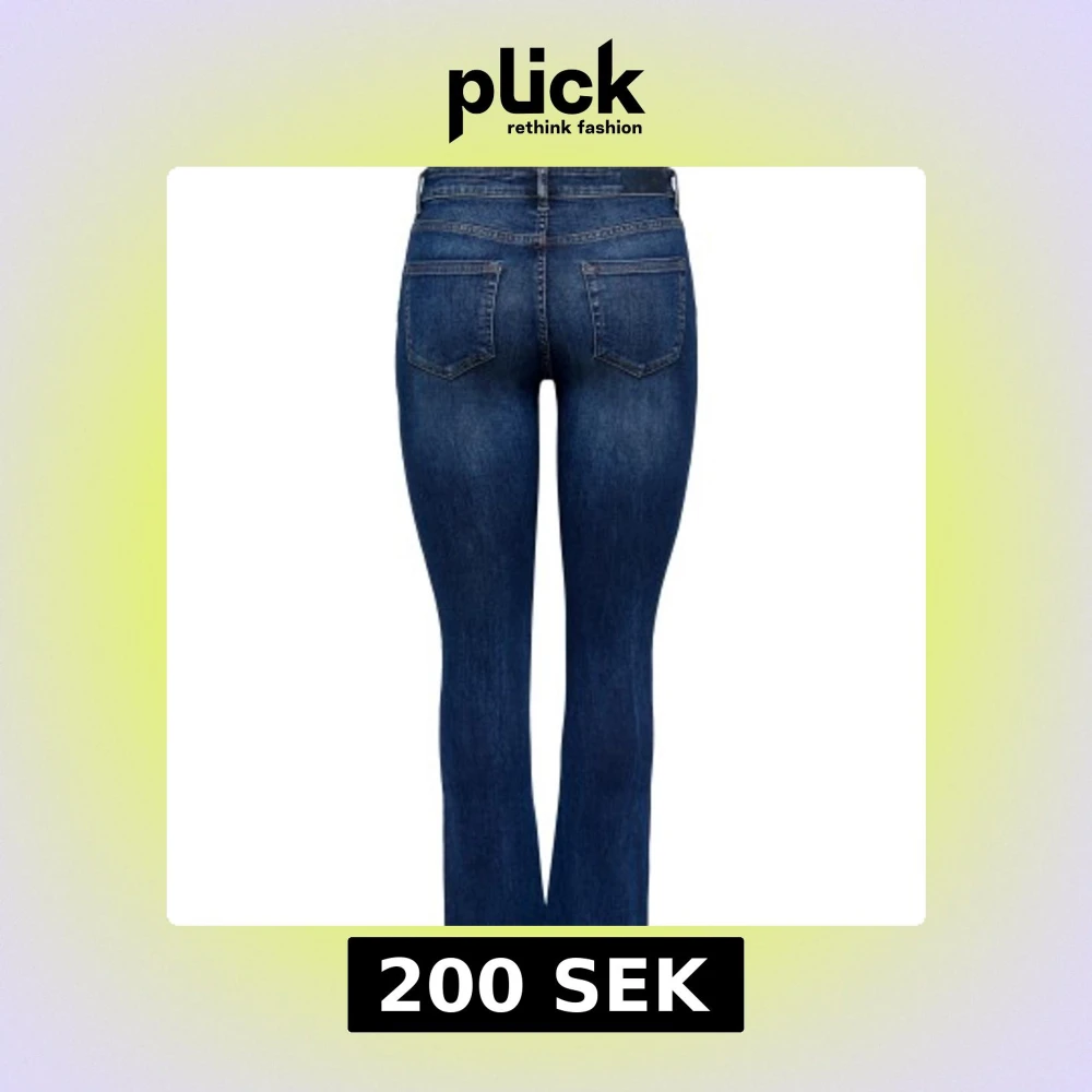 Snygga mörkblå bootcut jenas från ONLY, jeansen är använda fåtal gånger och är i ett extremt fint skick💞(Midwaist)