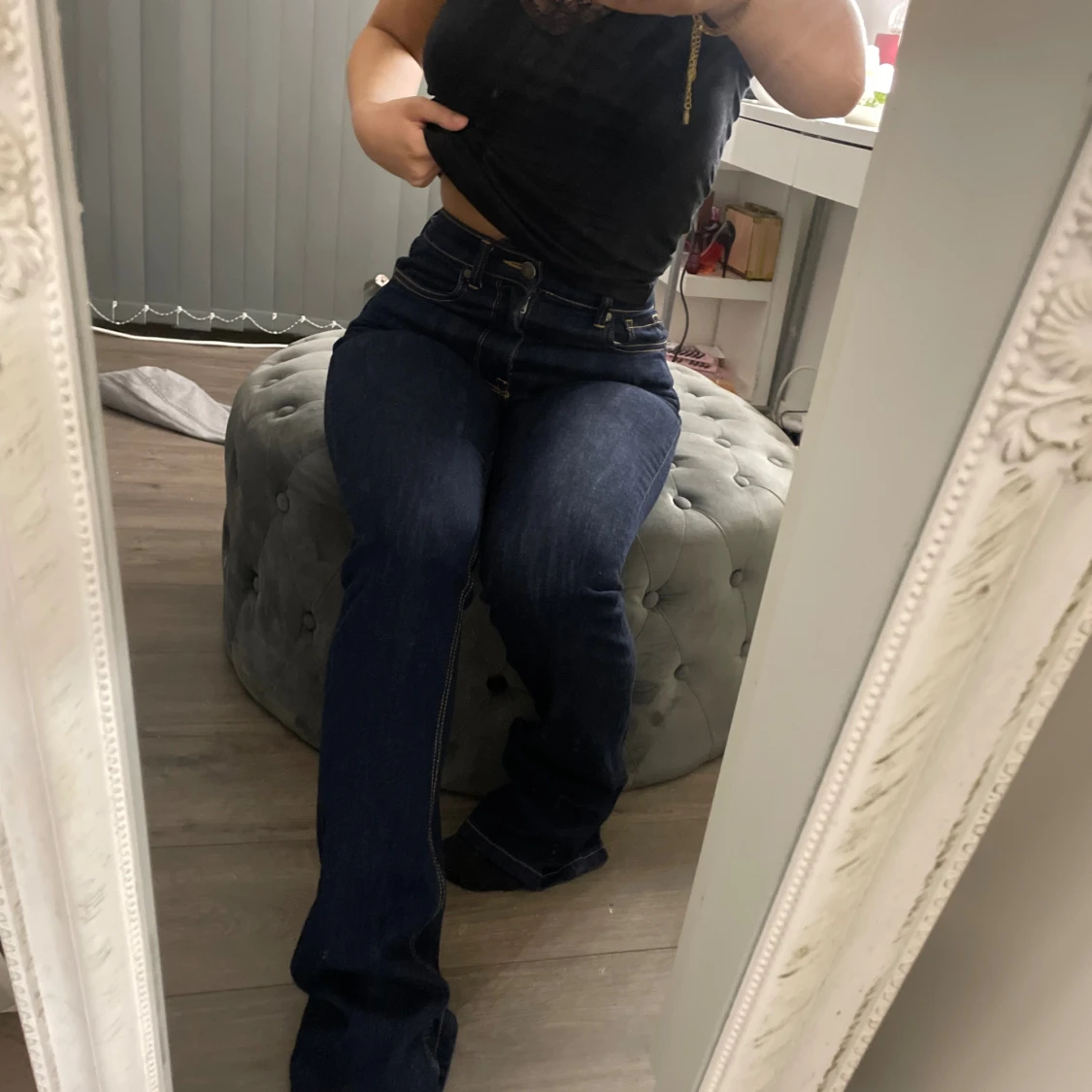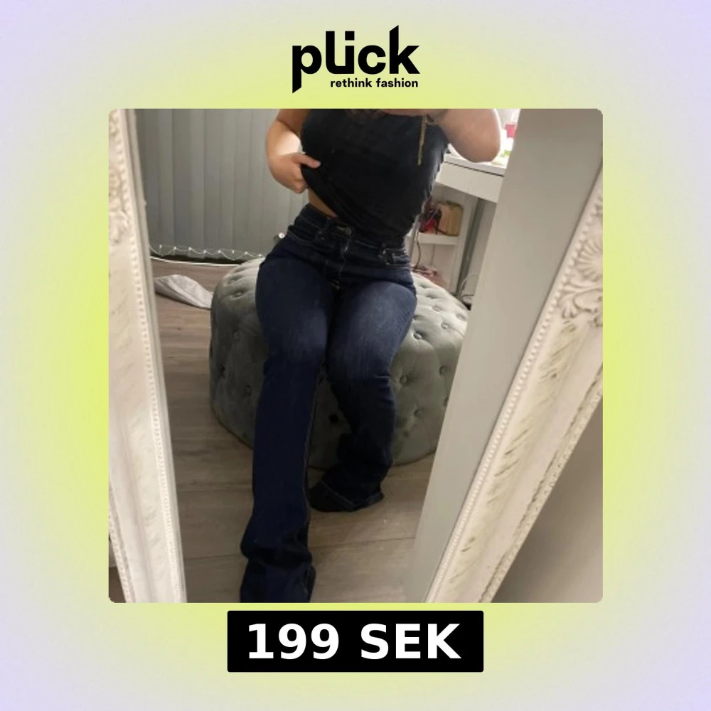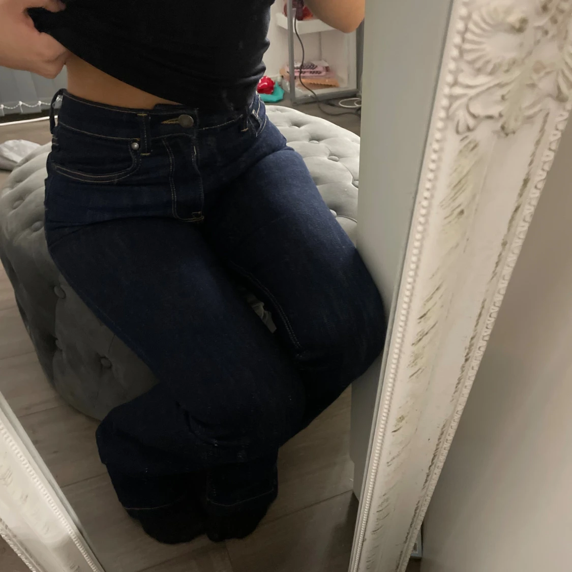 Mörkblå bootcut jeans med medelhögmidja