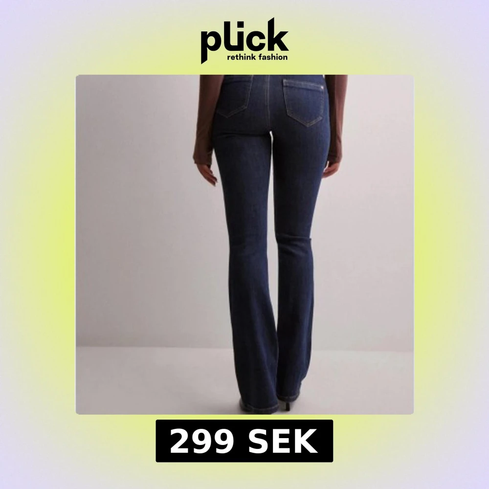 Snygga mörkblå jeans med bootcut passform och hög midja. Klassisk femficksdesign och raka ben som släpper ut vid ankeln. Perfekta för en trendig och avslappnad look. Säljes pga jag köpt nya då jag beställde i fel längd. Nypris 599