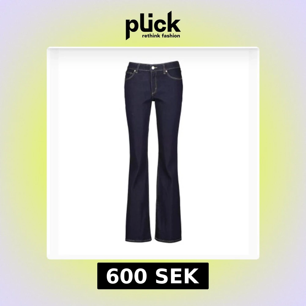 mörkblå bootcut jeans med låg midja och kontrastsömmar. Använda mindre än 10 gånger. Skitsnygga men tyvärr för små för mig. Passar någon med en större 36a eller liten 38. Jeans storlek 27 och passar mig som är 172 men har korta ben. 1000 kr nypris
