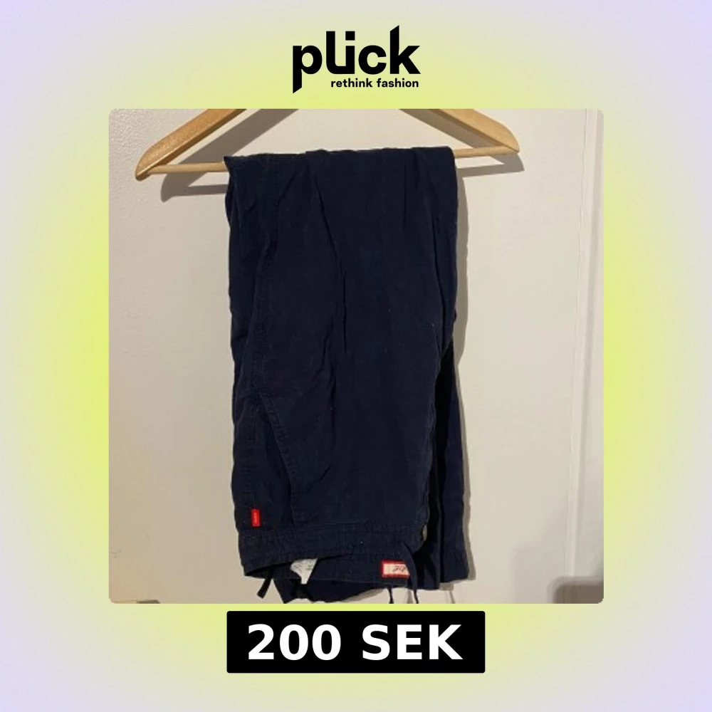 Baggy mörkblåa byxor, vet ej märke eller storlek men passar L-XL.