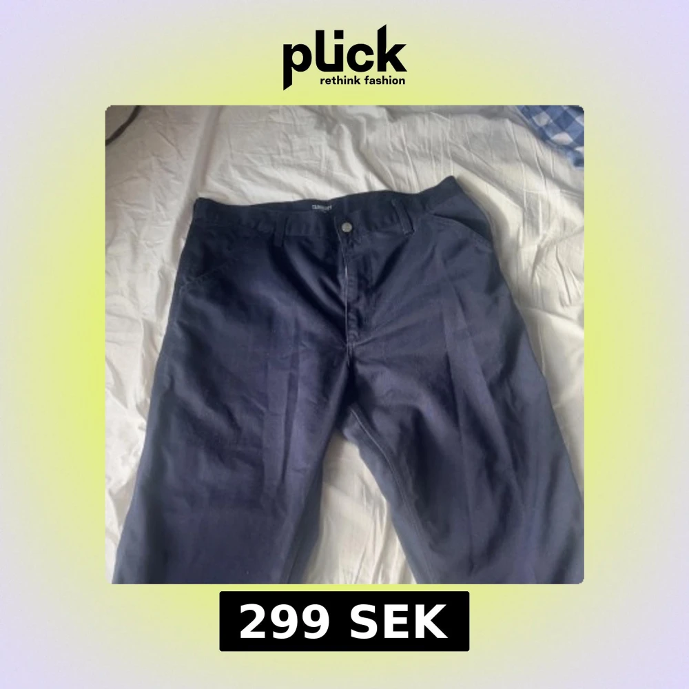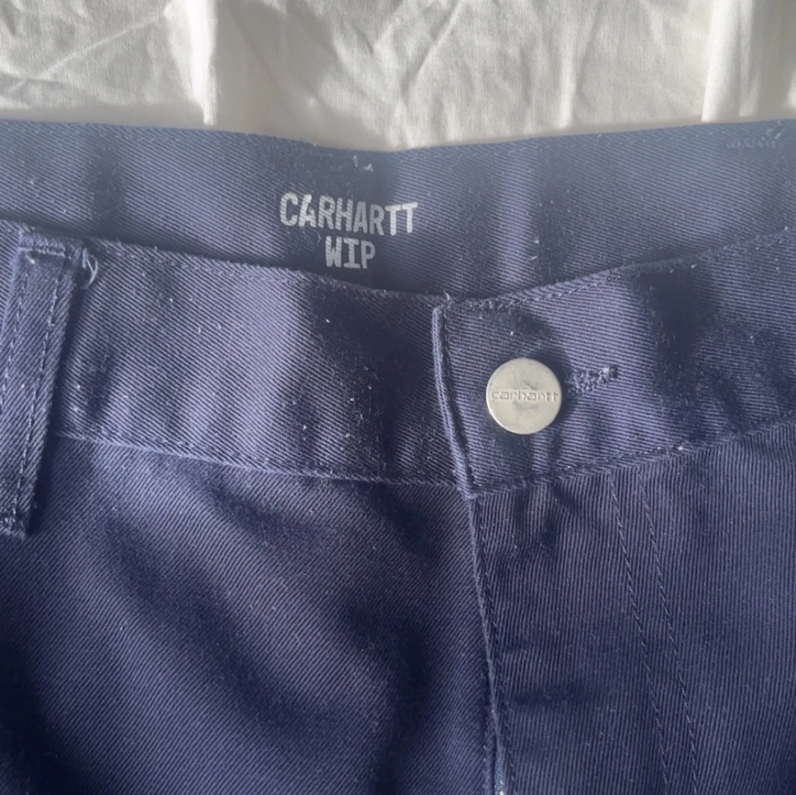 Snygga mörkblå byxor från Carhartt WIP med enkel design. Byxorna har en dragkedja och knapp framtill. Perfekta för en stilren look. Nypris är cirka 1000kr