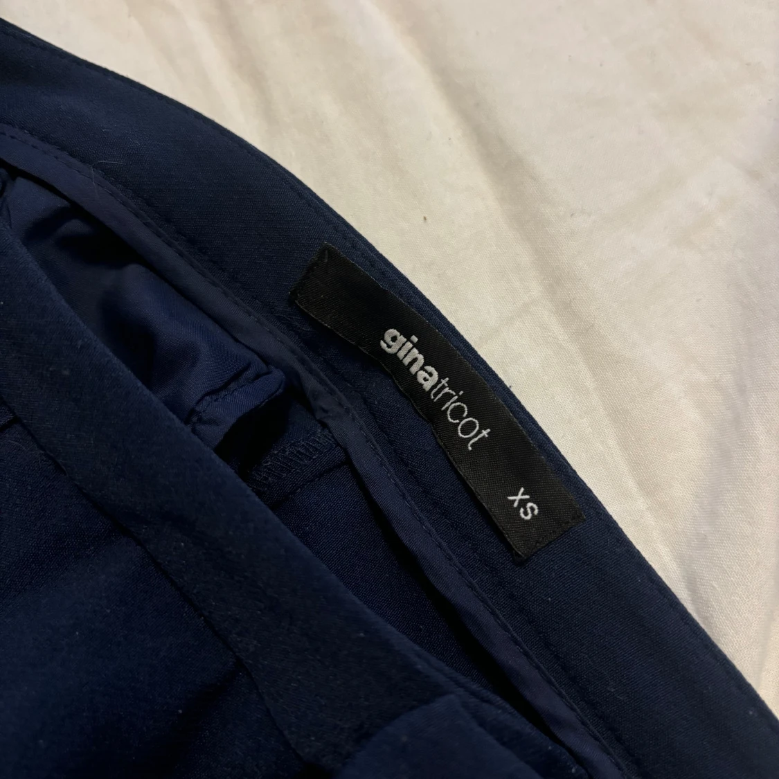 Säljer ett par mörkblå byxor från Gina Tricot i storlek XS. Använda fåtal gånger och ser oanvända ut! Fler bilder finns på