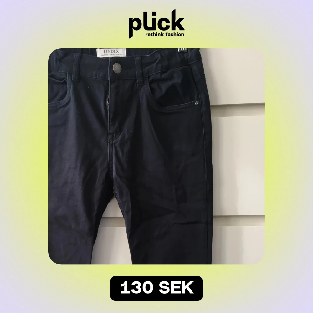 Säljer ett par mörkblå byxor från Lindex i storlek EUR 164. De har en ganska smal passform. Byxorna har en knapp och dragkedja framtill samt fickor. Märket 'Detroit' syns på baksidan. Passar perfekt till höst- och vintergarderoben!