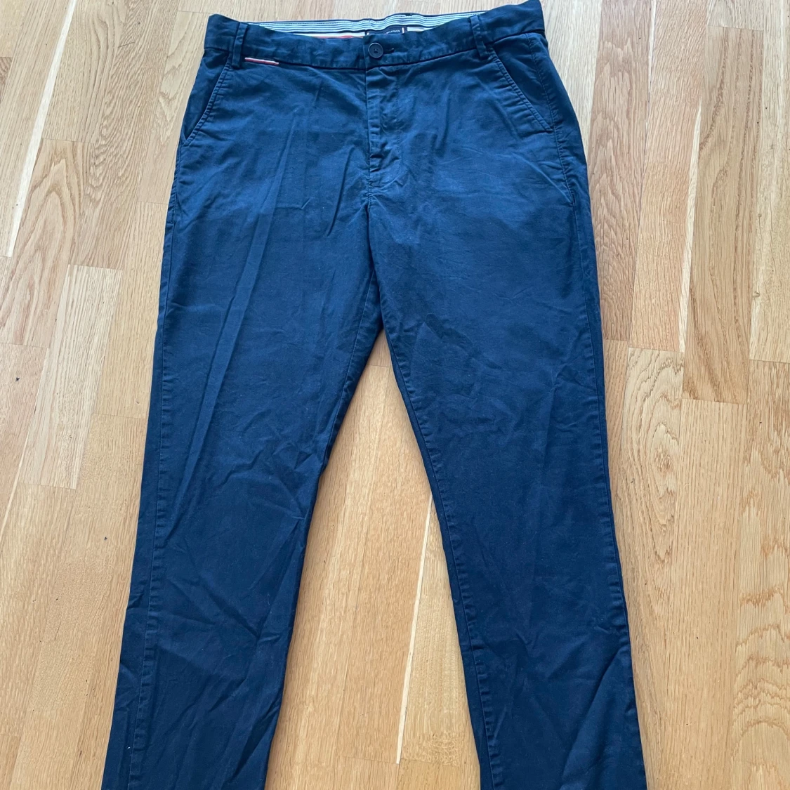 Snygga mörkblå chinos från Tommy Hilfiger med klassisk passform och raka ben. Byxorna har sidfickor, bakfickor med knapp och är tillverkade i mjuk bomull. Perfekta för en clean och stilren outfit. Tveka inte att kontakta vid frågor.