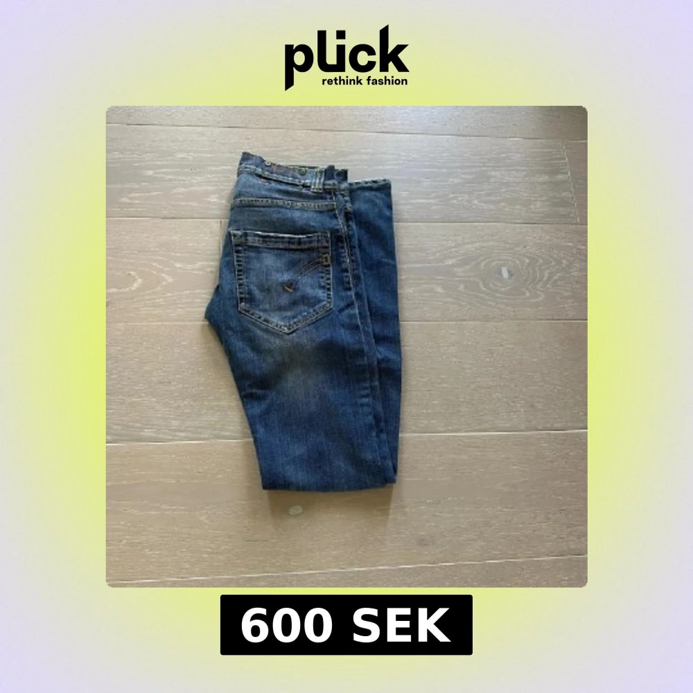 Snygga mörkblå slim dondup jeans med små slitningar i storlek 30