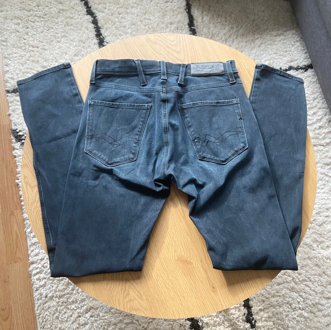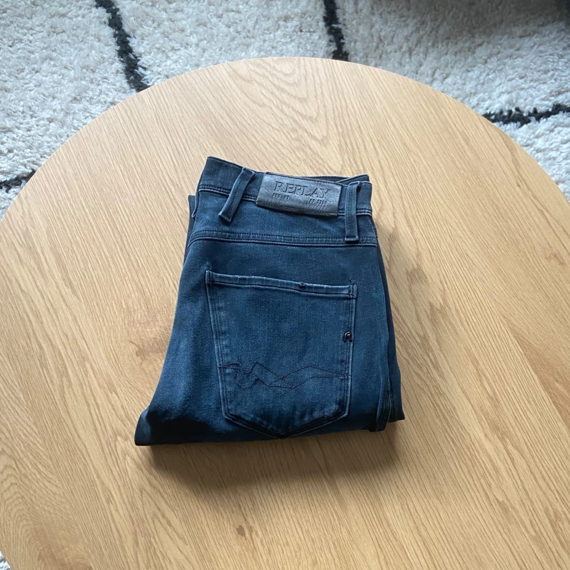 Snygga mörkblå jeans från Replay med klassisk femficksdesign och diskret Replay-logga på fickan👖Jeansen har raka ben och normal passform, tillverkade i mjukt denimtyg som sitter skönt hela dagen🙌 Perfekta för dig som gillar stilrena och tidlösa jeans⏱️ Jeansen är i Anbass modell och har hyperflex material🪢 De har storlek W28 L32📐 Vid frågor: Meddela oss!📩