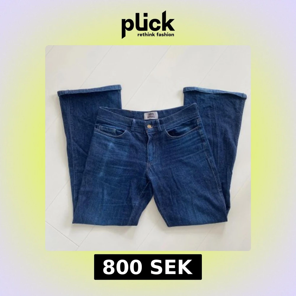 Snygga mörkblå jeans från Carnal Apparel med klassisk femficksdesign och bootcut-ben. Jeansen har normal passform och är tillverkade i ett mjukt denimtyg. Perfekta för dig som gillar en tidlös stil med lite utsvängda ben. Nypris 2500kr.