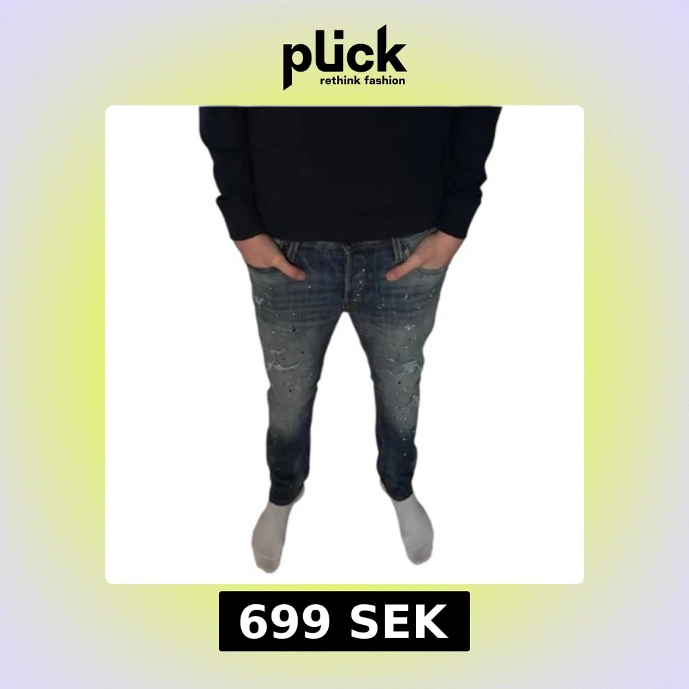 Säljer dessa otroligt feta jeans från Jack & Jones i modellen slimfit glenn 💫Väldigt unika och svåra att få tag på. Storlek 31/32. Knappt använda, i princip i nyskick 🤩🙌 Hör av dig vid minsta fundering!!!