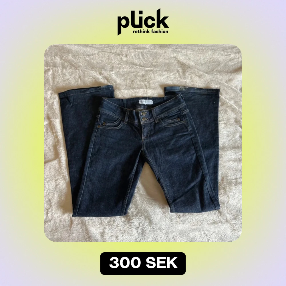 Säljer ett par snygga mörkblå jeans i bra skick. De har en klassisk femficksdesign med knappar och dragkedja fram. Perfekta för både vardag och fest! 🕺