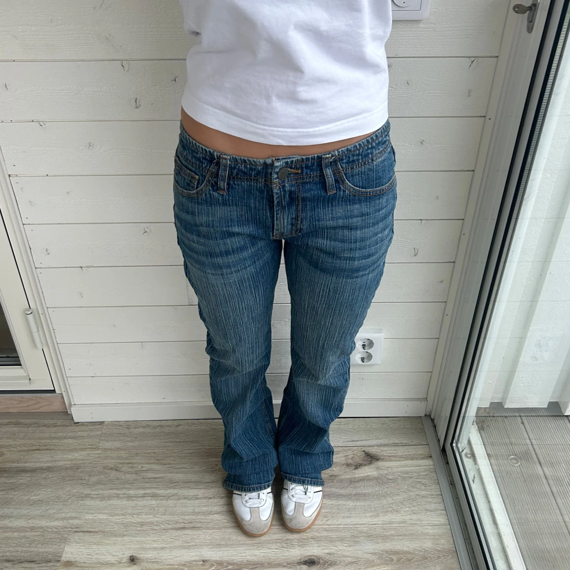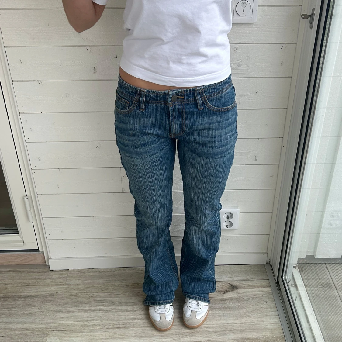 Mörkblå lågmidjade jeans från brandy melville. Storlek: S