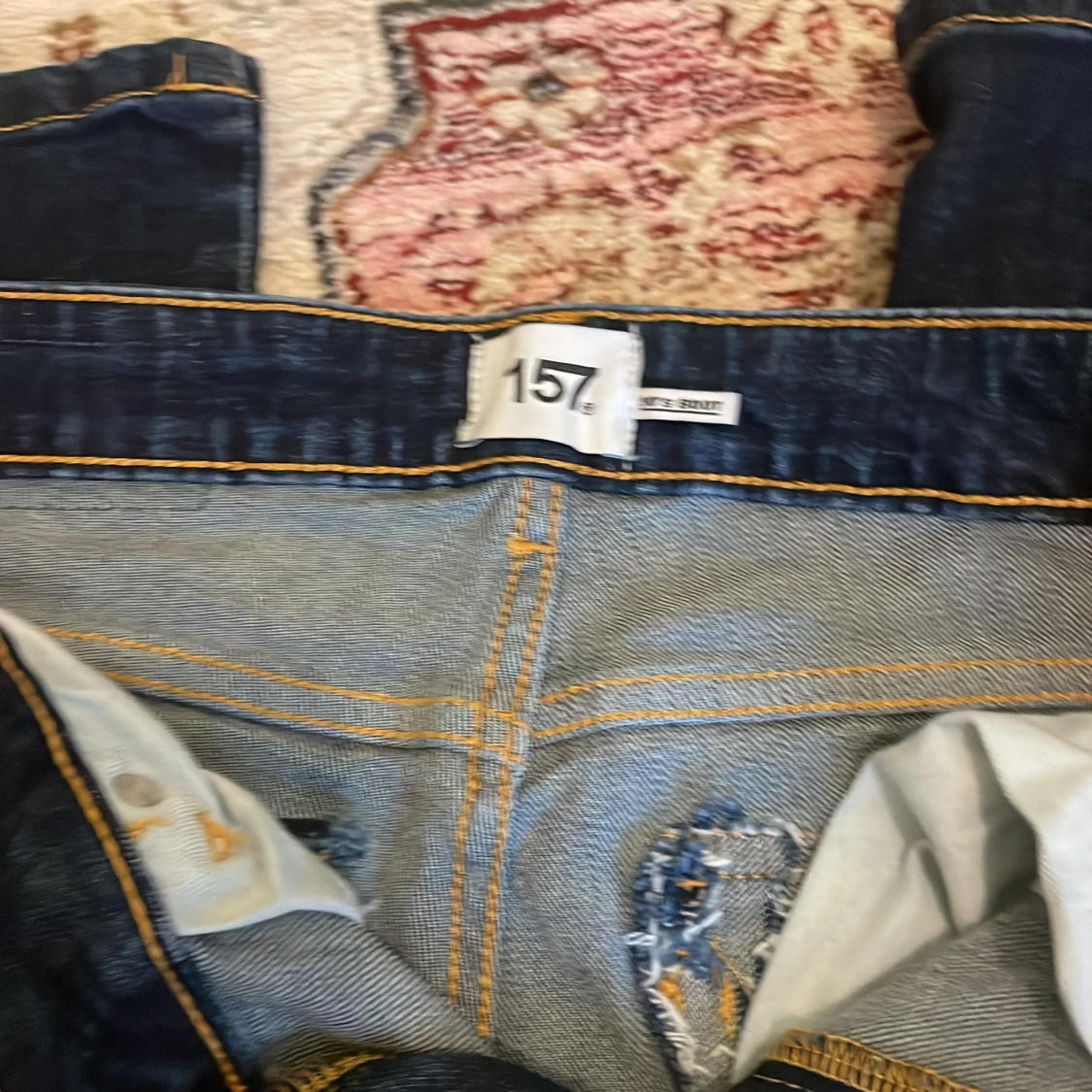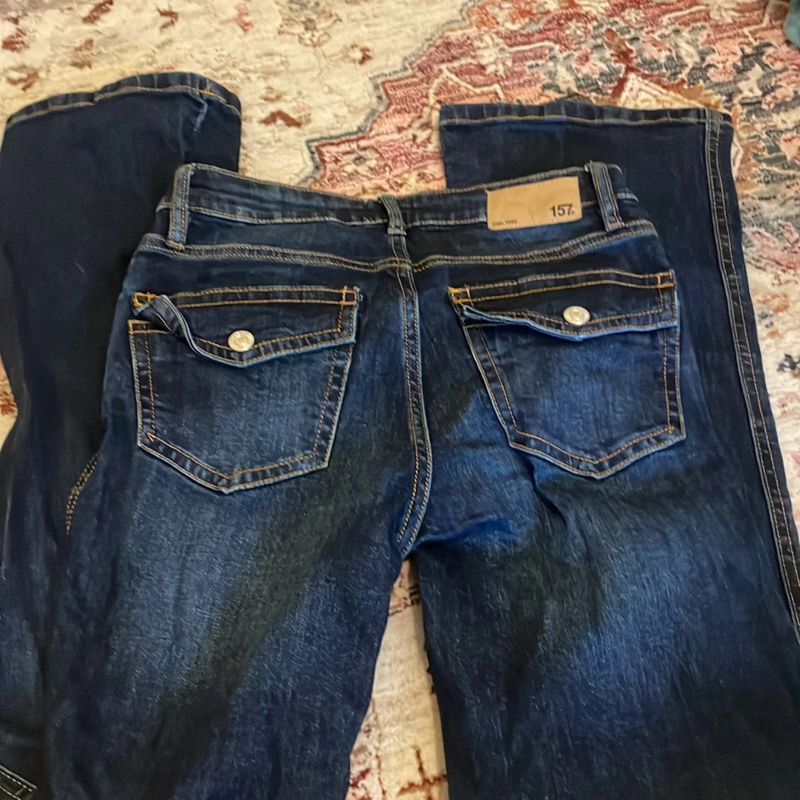 Snygga mörkblå jeans från 157 med raka ben och klassiska kontrastsömmar. Jeansen har fem fickor, varav bakfickorna har lock och knapp. Tillverkade i slitstarkt denim med normal passform och midja.