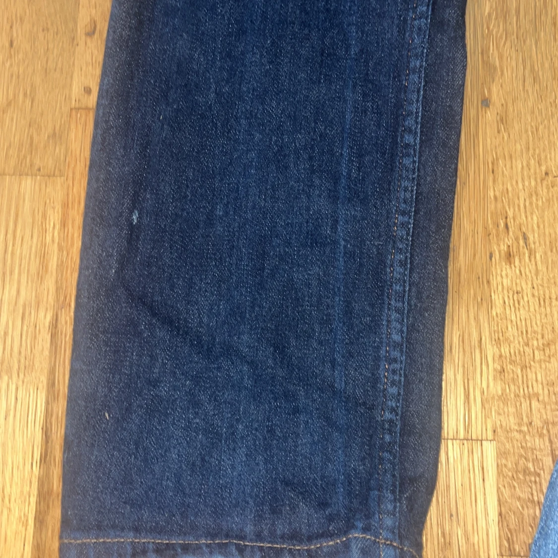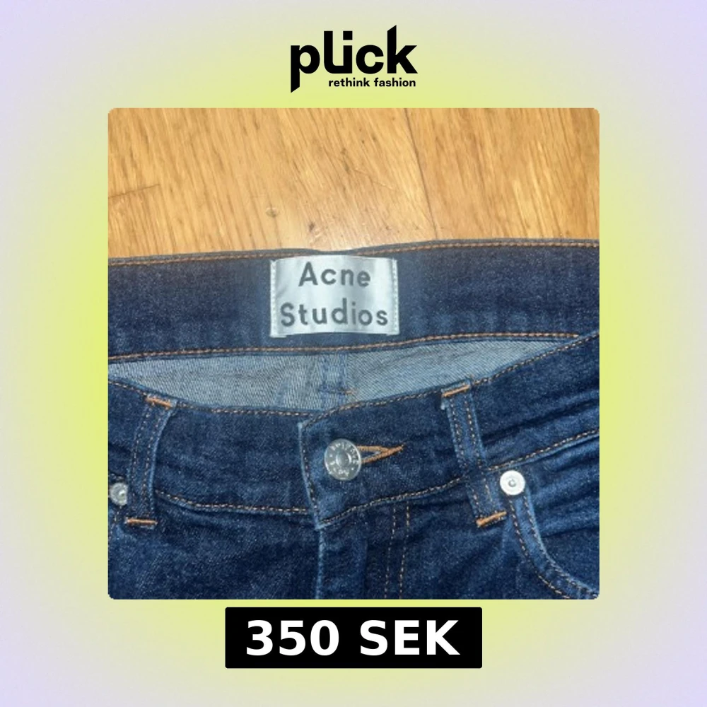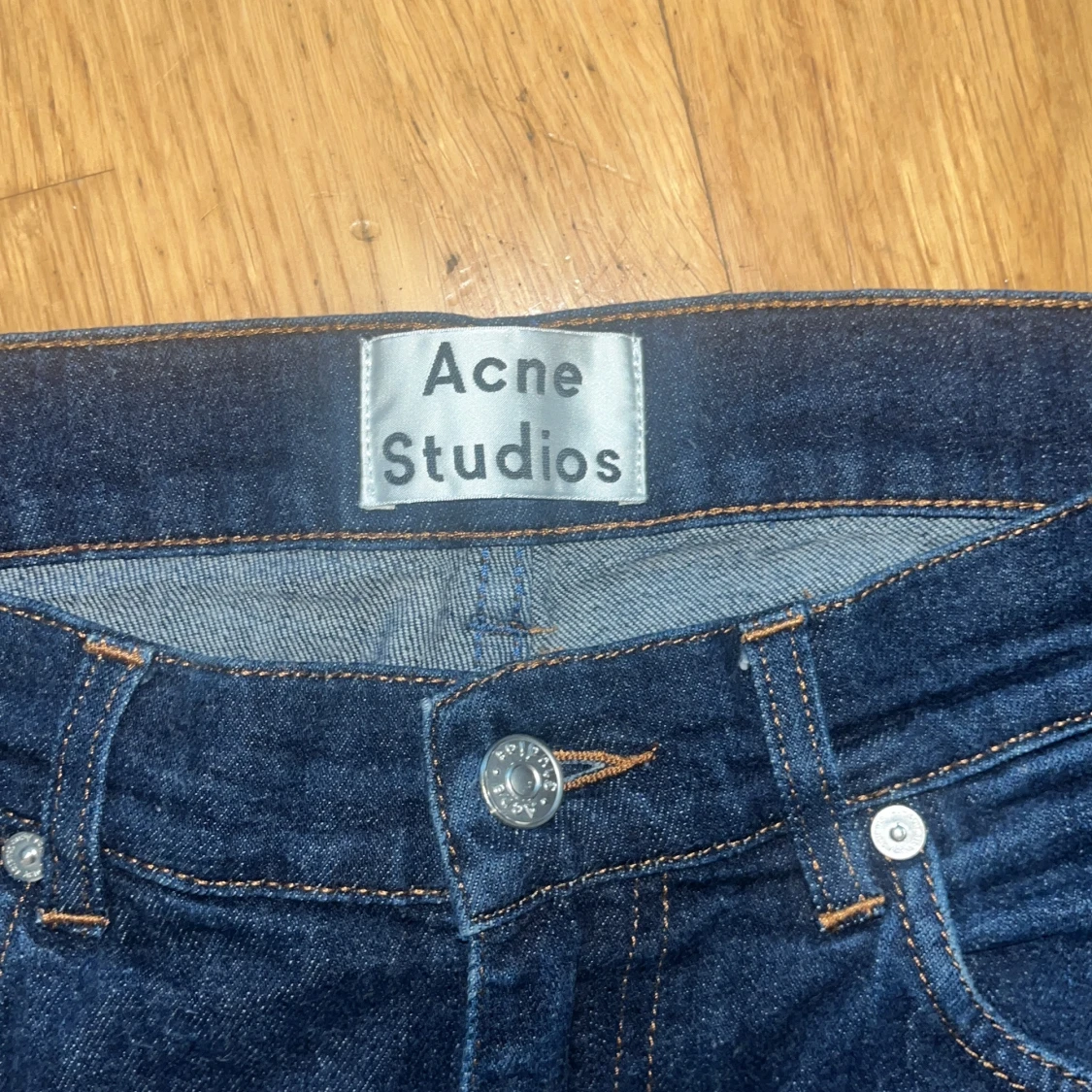 Snygga mörkblå jeans från Acne Studios med klassisk femficksdesign och raka ben. Jeansen har orange kontrastsömmar och silverfärgade nitar. Perfekta för dig som gillar stilrena och tidlösa jeans i hög kvalitet. Modellen är ace rinsed och storlek är w31 l32 pytteliten defekt på höger ben, se bild 4
