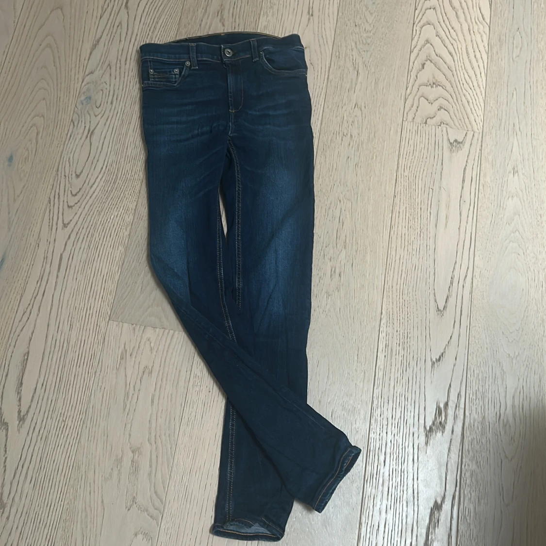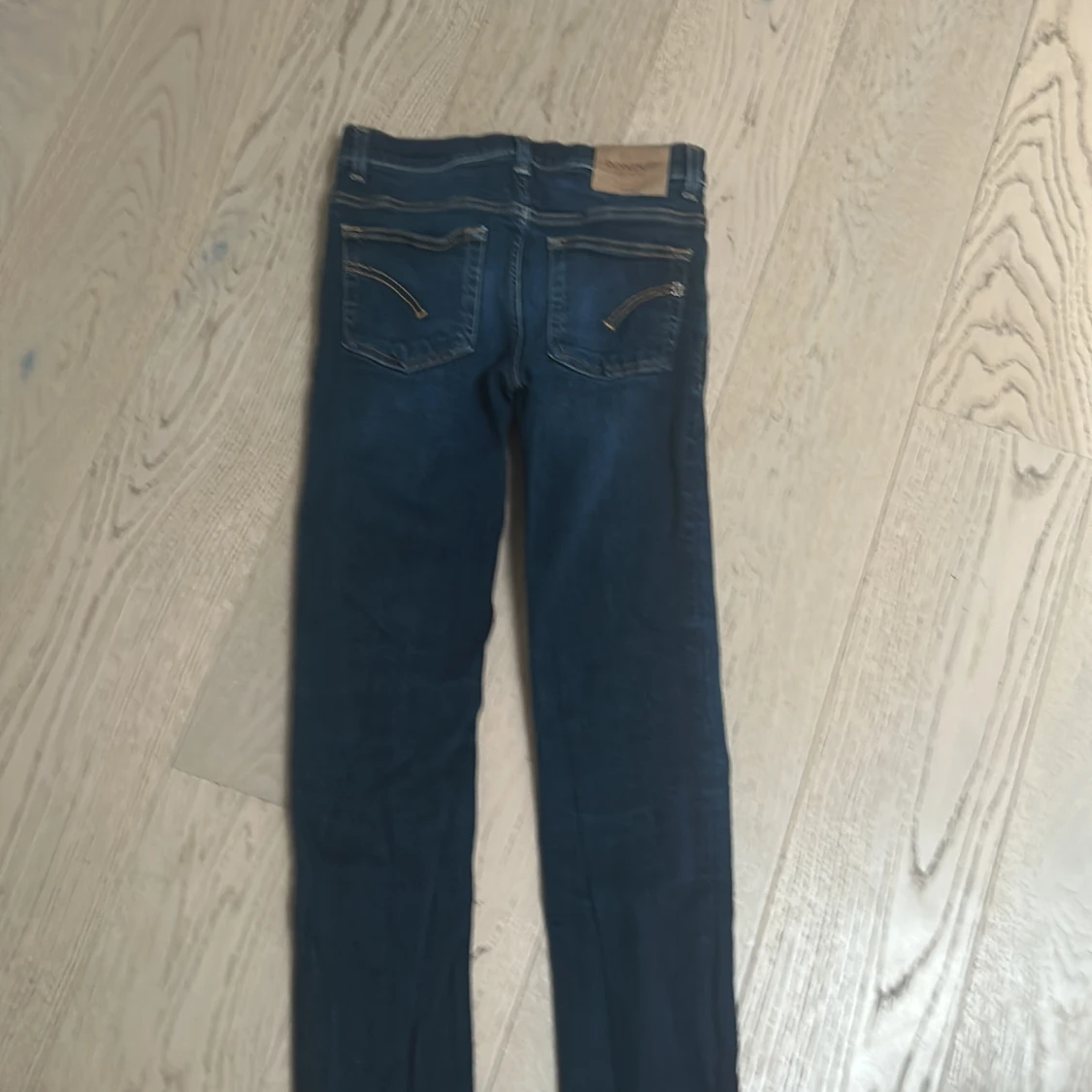 Snygga mörkblå jeans från Dondup med klassisk femficksdesign och subtila slitningar. De har en knappgylf och är perfekta för en stilren look. Typ som ny skick