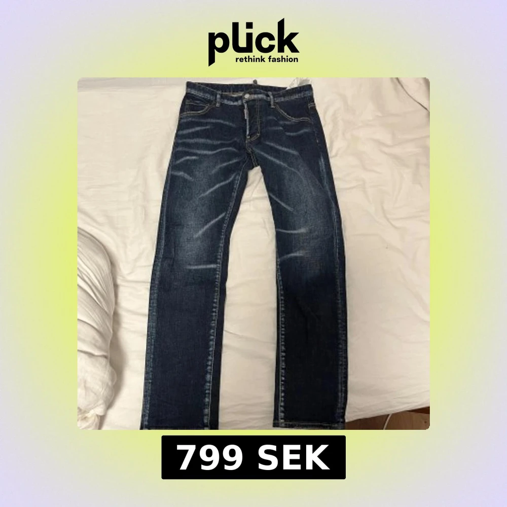 Snygga mörkblå jeans från Dsquared2 med knappgylf och kontrastsömmar. Tillverkade i Italien, dessa jeans har en klassisk design med en modern twist. Perfekta för dig som vill ha stil och kvalitet i ett. Pris sänks vid snabbaffär.